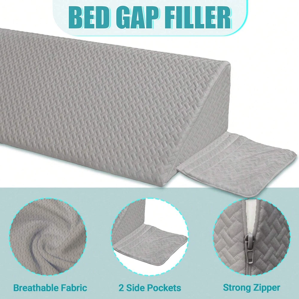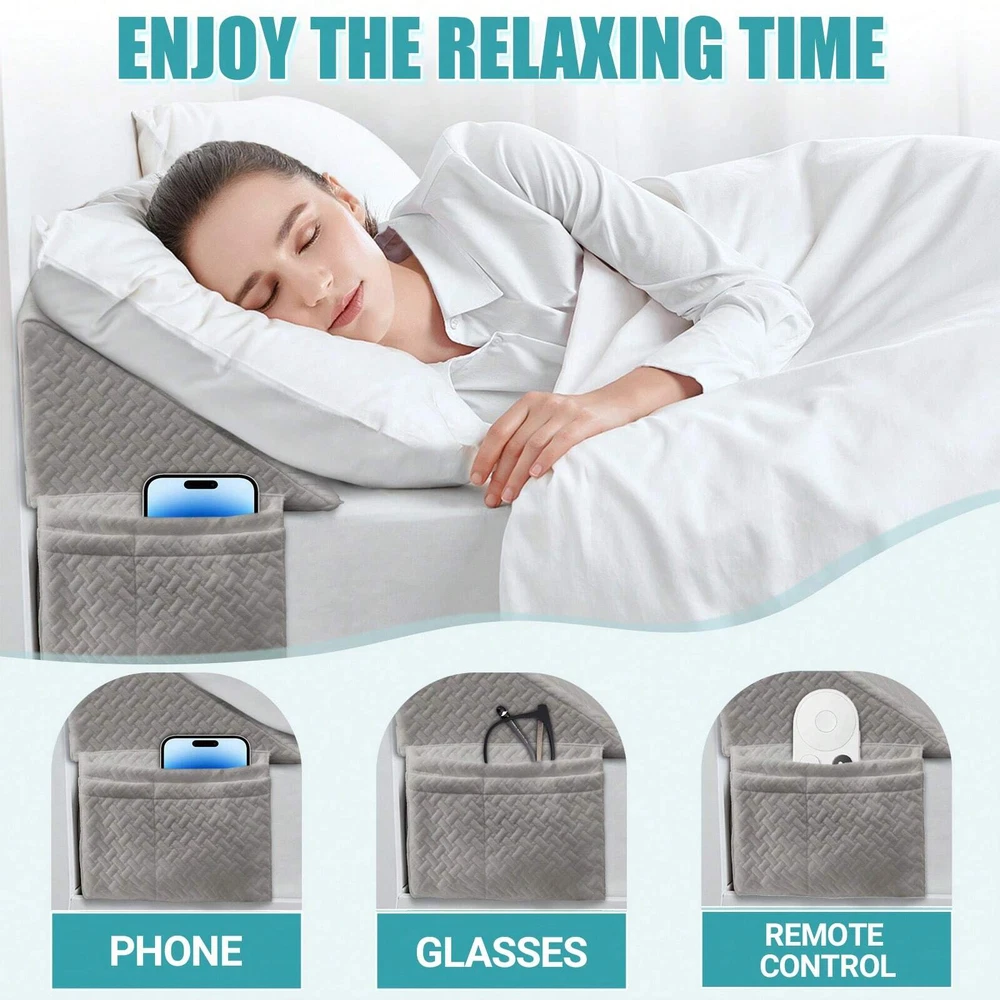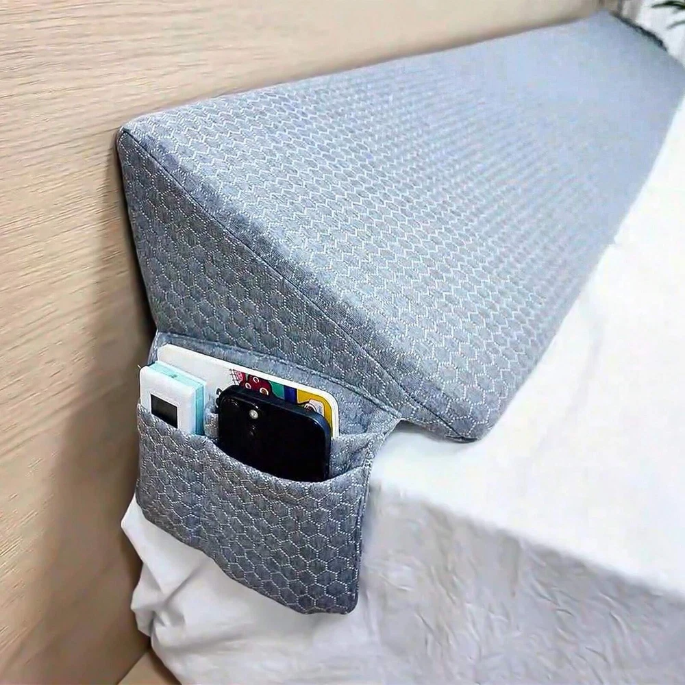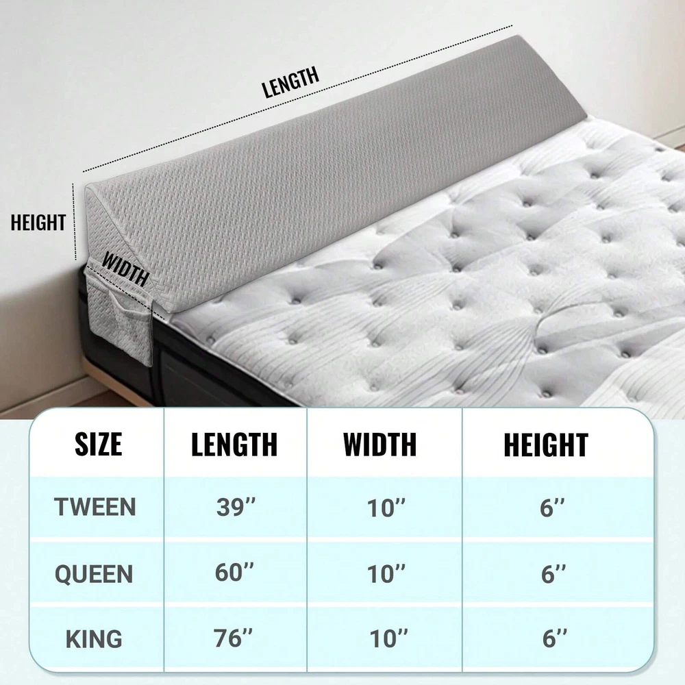 1pc White Bed Wedge Pillow For Headboard Gap Filler (0-8") - Removable Machine-Washable Cover, Foam-Filled, Textured Woven Design With Side Pocket For Phone & Glasses, Perfect For Mattress And Headboard Gap, Bedroom Accessory | Simple White Pillow | Woven Polyester Cover, Pillows For Bed