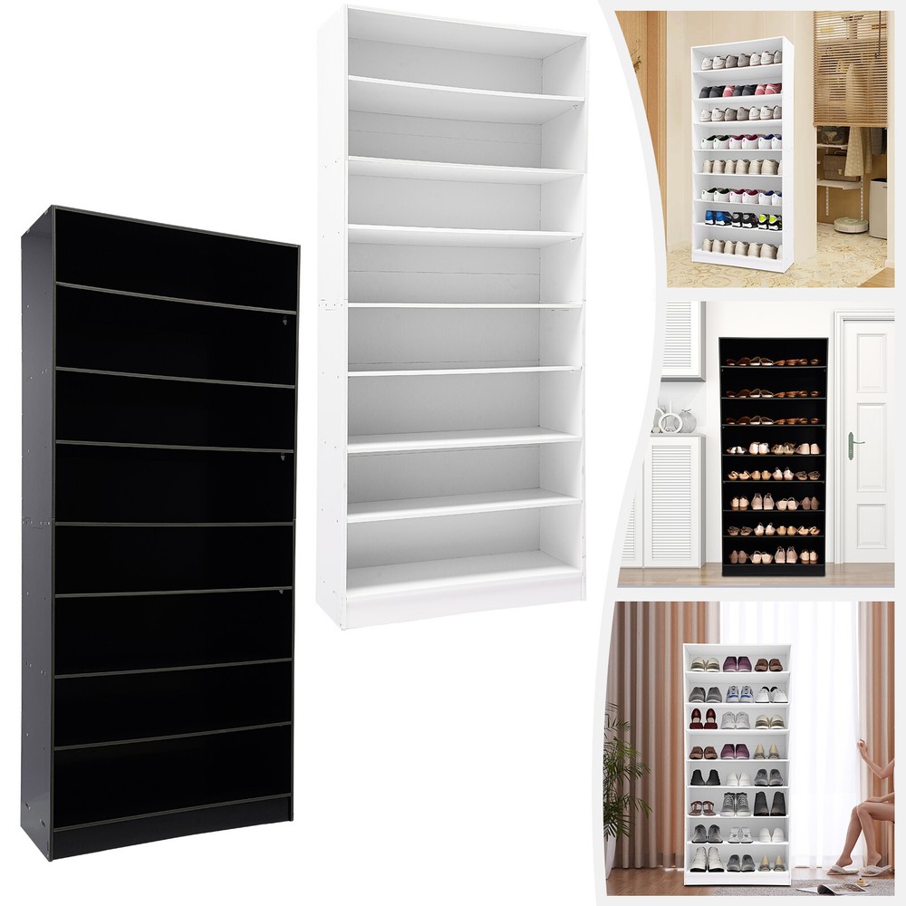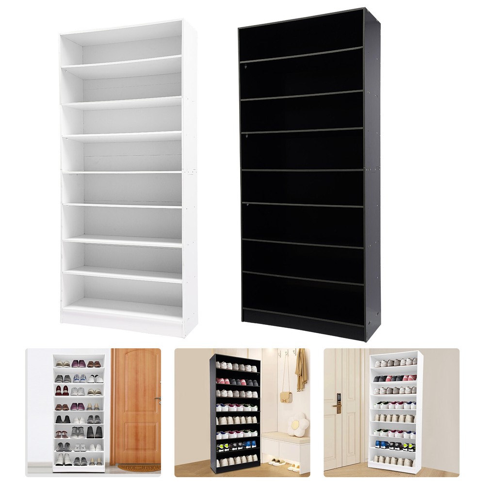 Specifications Material: PVC Wood Plastic Board, Mesh Foam Process: PVC Co-extruded Layer Style: Modern Color:White / Black Mount Type: Freestanding Product Care Instructions: Wipe with Damp Cloth Shape: Rectangular Assembly Required: Yes Number of Tiers: 8 Number of Compartments: 8 Number of Shoes Applicable Each Tier: 4 Pairs Overall Load-bearing Capacity: 50kg/110.23lbs Gross Weight: 17kg/37.48lbs Net Weight: 16kg/35.27lbs Each Compartment Size(L*H): 77*19cm/30.31*7.48in Overall Product Size: 80*30*178.7cm/31.5*11.81*70.35in Package Size: 95*46*15cm/37.4*18.11*5.91in Package Included 1*Shoe Storage Cabinet 1 Pair*Gloves 1*Sandpaper 1*English Assembly Diagram 1*Schematic Diagram of Sandpaper Grinding All Accessories for Assembly White/Black 8 Layers Shoe Storage Cabinet,Shoe Rack Organizer Dustproof Description~~ Description In our daily life, a neat and organized space can make us feel relaxed and happy. The feeling of coming home starts from entering the door and changing shoes. Look at our shoe storage cabinet made of high-quality PVC wood plastic board and mesh foam with a PVC co-extruded layer process. With its large capacity and elegant appearance, this item makes you feel warm, giving you a sense of pleasure and comfort from the moment you walk in the door. Key Features Build to Last: It is made of high-quality PVC wood plastic board and mesh foam with a PVC co-extruded layer process, which makes it strong and durable, not easy to deform, so you can use it with peace of mind in your daily life. Large Capacity: With eight tiers of shoe storage and room for 4 pairs of regular shoes per tier, this product is big enough for a family's shoe storage needs. Strong Load-bearing Capacity: The premium materials and rectangular structure allow to withstand up to 110.23lbs without collapsing, giving you a piece of mind. Shoe Storage Assistant: It cleverly integrates shoe storage into life, placing it at the doorway to store your messy shoes, making it pleasing to the eyes as soon as you open the door, and bringing you an organized lifestyle. Thoughtful Design: The open design allows you to see your shoes at a glance while still allowing for effective ventilation. You can also change the tier spacing by removing the tiers to fit different sized shoes and items. Space Saving: It utilizes vertical space wisely and has a small footprint(31.5*11.81 inches), so this cabinet won't take up much space in the room. Elegant Appearance: The sleek black finish and simple structure create a touch of elegance and casualness. It blends well with a variety of interior styles, bringing stylish functionality and aesthetics to your space. Easy to Install: A full range of accessories, a detailed English assembly diagram and simple construction allow you to install and use quickly. Hassle-free Cleaning: Thanks to its smooth surface and simple structure, you can easily clean it with water and a rag (not included). Ideal Gift : Beautiful appearance and practical function make it a nice housewarming gift for your family and friends. Practical Gloves: They make installation quicker and protect your hands from scratches. Sandpaper: It allows you to grind the surface of the product to make it polished and smooth. Mesh Foam Non-slip Pads: They stabilize that product well and won't scratch the floor. Application It can be used in the foyer, living room, porch, corridor, and other places for storing shoes, trainers, sandals, sundries, towels, flower pots, and so on. Specifications Material: PVC Wood Plastic Board, Mesh Foam Process: PVC Co-extruded Layer Style: Modern Color: White/Black Mount Type: Freestanding Product Care Instructions: Wipe with Damp Cloth Shape: Rectangular Assembly Required: Yes Number of Tiers: 8 Number of Compartments: 8 Number of Shoes Applicable Each Tier: 4 Pairs Overall Load-bearing Capacity: 50kg/110.23lbs Gross Weight: 17kg/37.48lbs Net Weight: 16kg/35.27lbs Each Compartment Size(L*H): 77*19cm/30.31*7.48in Overall Product Size: 80*30*178.7cm/31.5*11.81*70.35in Package Size: 95*46*15cm/37.4*18.11*5.91in Package Included 1*Shoe Storage Cabinet 1 Pair*Gloves 1*Sandpaper 1*English Assembly Diagram 1*Schematic Diagram of Sandpaper Grinding All Accessories for Assembly Notes Please confirm the installation dimensions before purchasing. Please note that this product does not include display items such as shoes. Please note that the number of shoes that can be stored will vary depending on the size and height of the shoes. Please wear the glove (included) when assembling. Please allow the slight color difference caused by the shooting light and 1-3cm error due to manual measurement, and make sure you do not mind before you order. tu1 Payment Delivery details Terms of sales About us Contact us Payment We accept ebay payment 。 Fees such as import duties, taxes are not included in the item price or shipping costs. These charges are the buyer's responsibility. Delivery details Shipping: 2-9 working days to: USA Terms of sales We maintain high standards of excellence and strive for hundred percent customer satisfaction. Feedback is very important to us. We hope that you contact us immediately before you give neutral or negative feedback, so that we can address your concerns. It is impossible to address issues if we do not know about them! About us Your satis faction is our ultimate goal. We work hard to earn your trust and future business. Our certified technicians have tested each item before shipping. The unit comes with 1 year limited warranty on all manufacturing defects. a) If you receive a defective item, you may return it or ask for a discount. Please contact us within 14 days after you receive the package. b) What you returned must be intact and in its original packaging as re? u. Customer is responsible for shipping costs of the returned item. c) We will cover the cost of shipping back t with the shipping rate indicated in the registration page. We will send you a new unit or refund the full pa