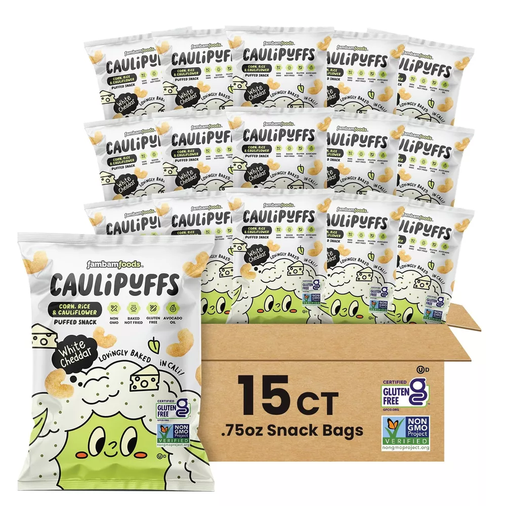 Luscious light and airy snack puffs, delightfully seasoned with cauliflower. Satisfy crunch cravings for the whole family. Guilt-free goodness, a healthy alternative to junk food - non GMO, gluten-free, baked in avocado oil and 100 calories. Perfectly portioned individual packed snacks for lunchboxes, backpacks and parties. Don’t let hunger interrupt your next adventure! Yummy snacks for tummies that do not stay on fingers (or Mommy’s dress!) No strong smells or squishiness, just mess and stress-free snacks. A family-owned brand, made with love in California. Sharing fun, health and adventure, from our family to yours.