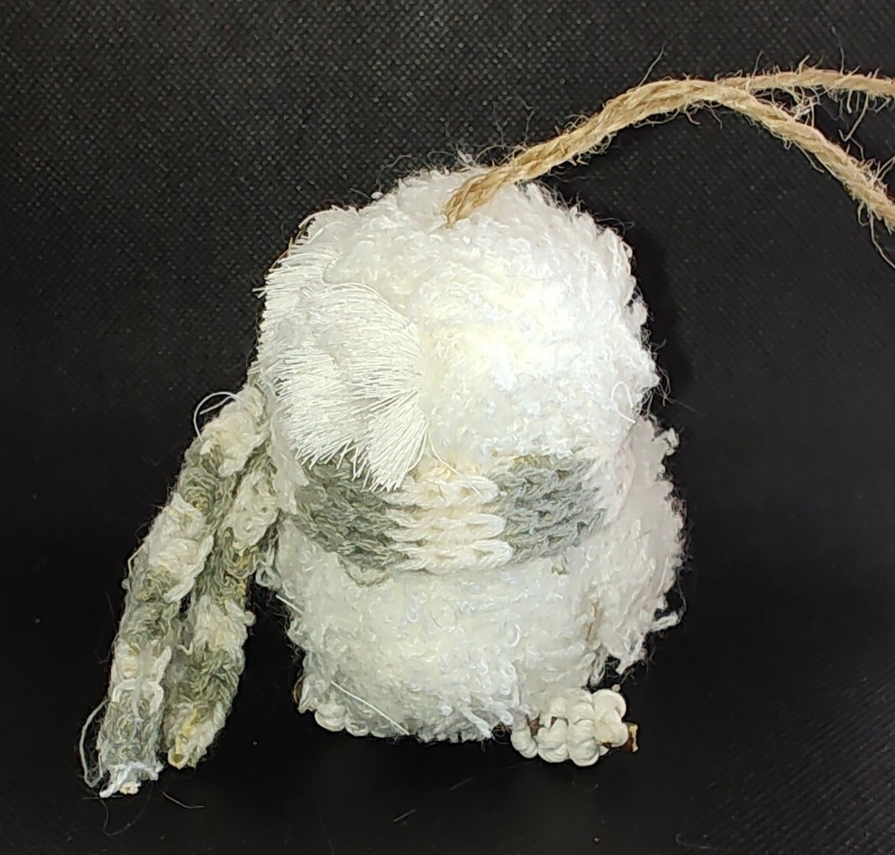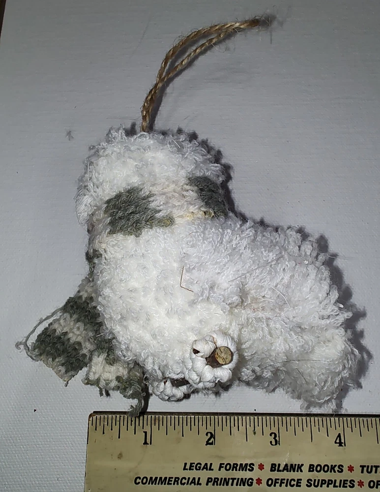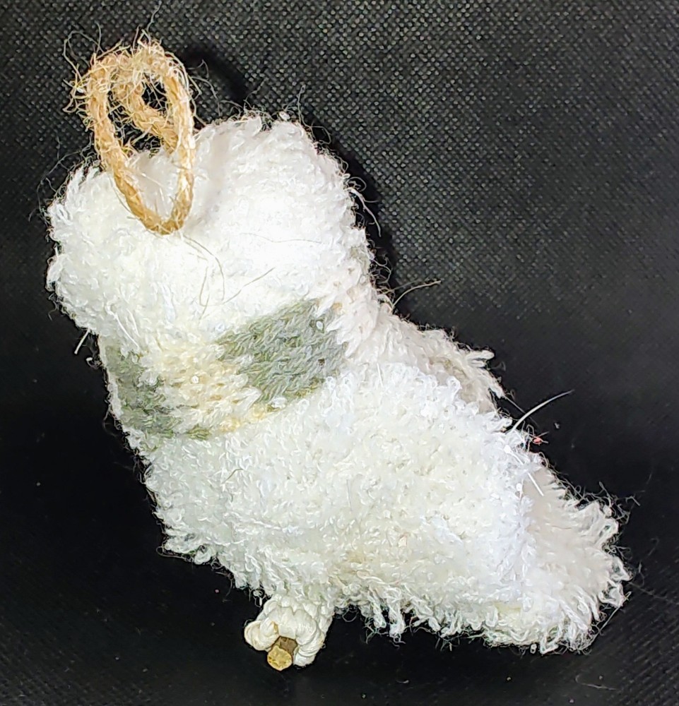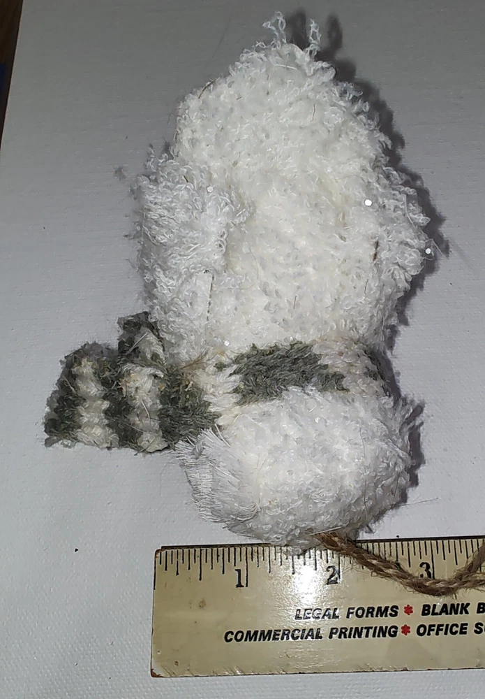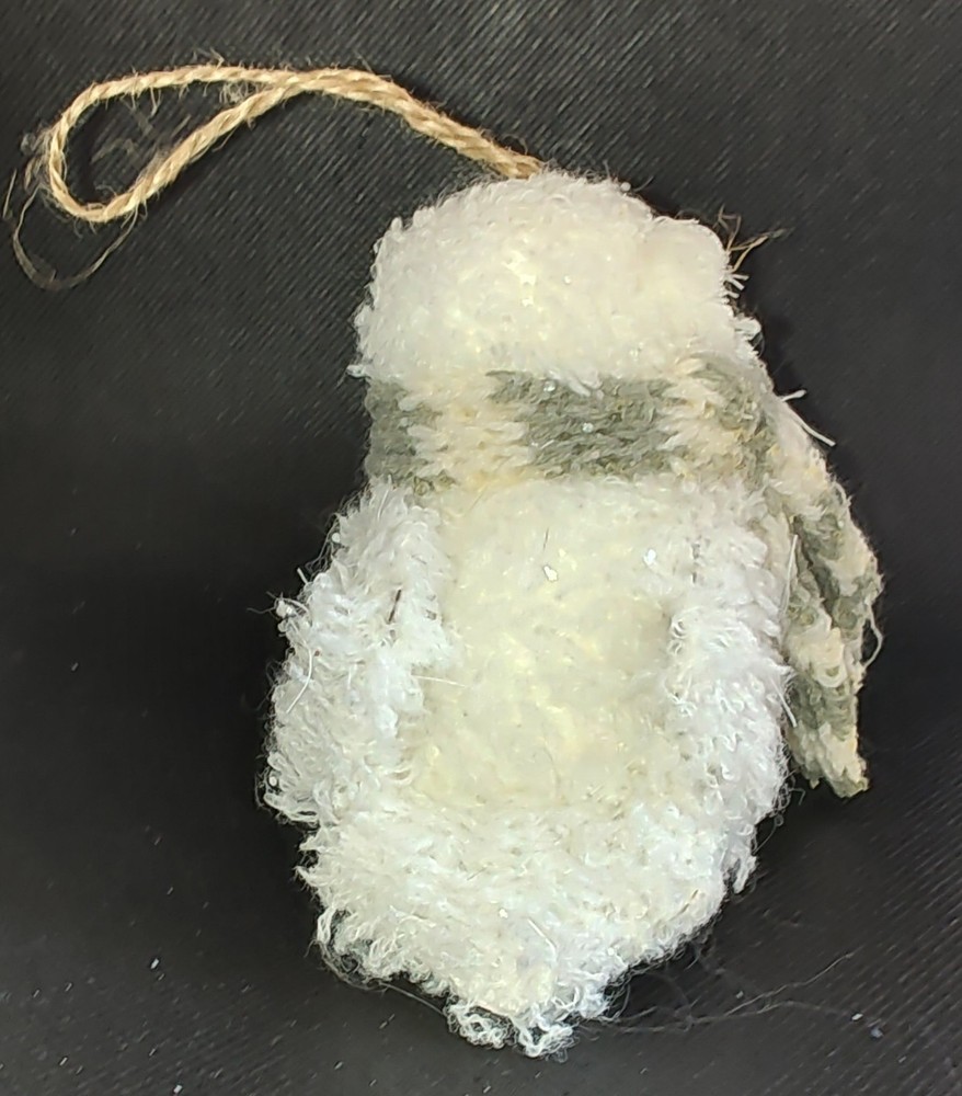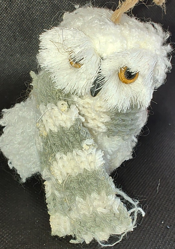 Chenille Owl Ornament White Knit Green & White Scarf Twine Loop Lightweight Cute