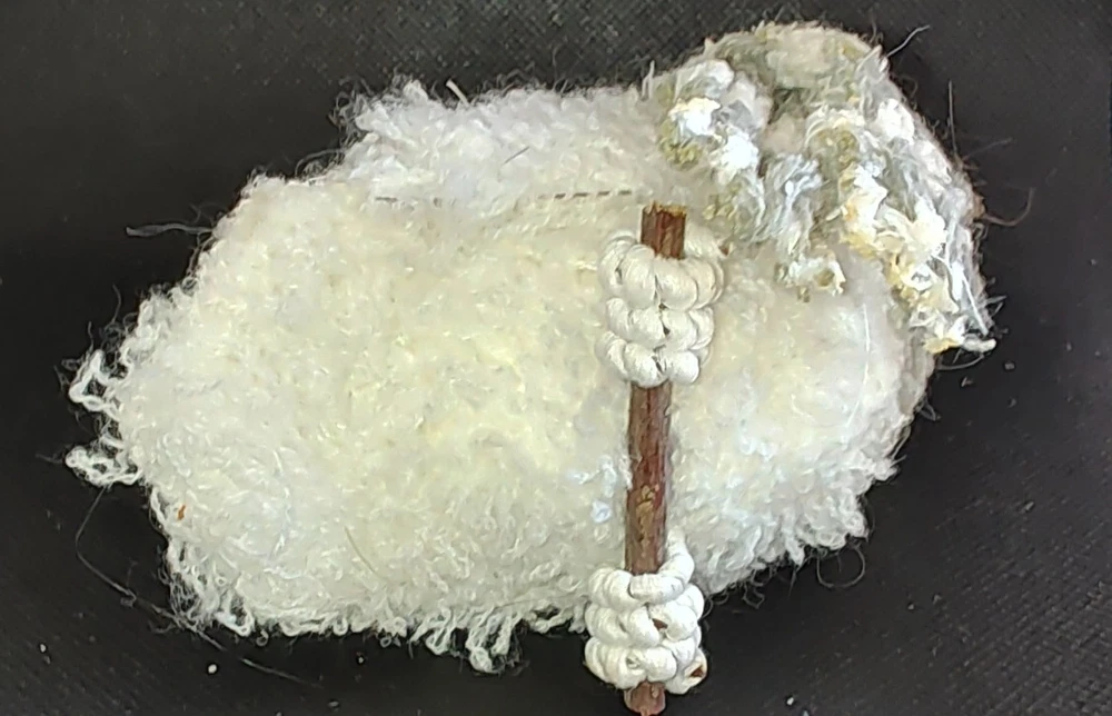 White Chenille Owl Ornament with Green Scarf and Twine Loop - Lightweight Cute Decor