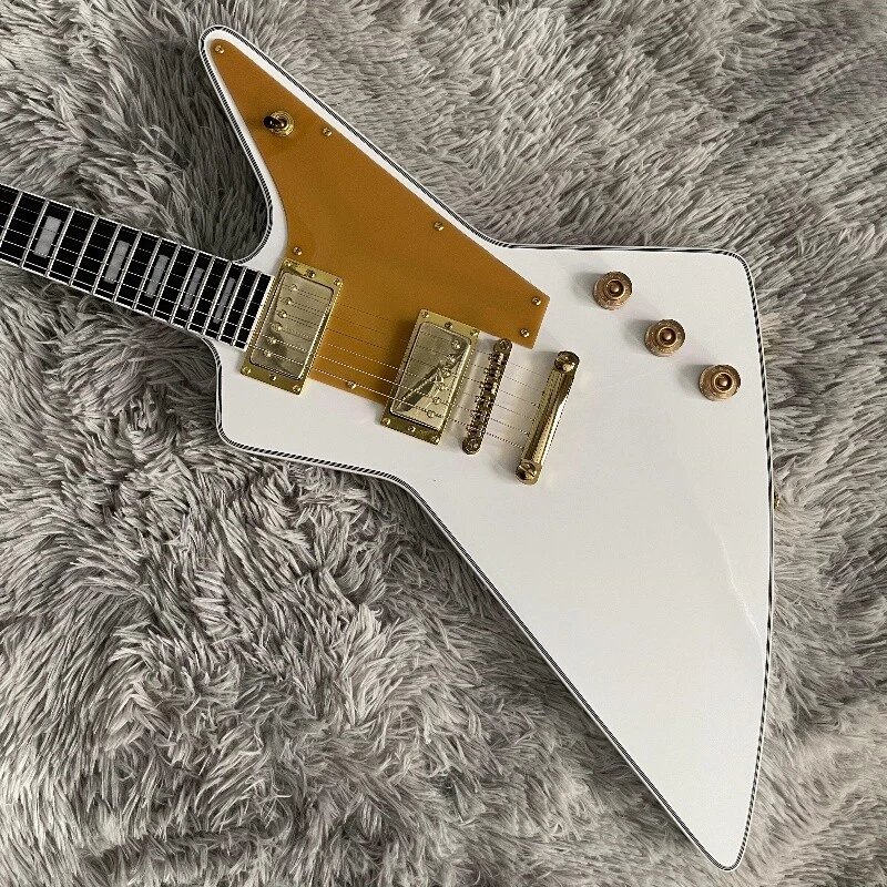 White Explorer 70s HH Pickups Electric Guitar Gold Pick Guard Factory Outlet Instruction: Our company is located in China,specializing in producing various kinds of guitar and its accessories. Currently we produce over 200 different models of electric and acoustic guitars! That not only look fabulous, but are extremely playable and the quality truly extends above the price tag. Every guitar is made with painstaking effort, we design and manufacture with our hearts, so that every guitar is unique. Features: Body:Mahogany Neck: Mahogany Fingerboard: Black Pickups:2 Humbuckers Pickup Switch:3-ways Electronic:1 Volume 2 Tone Bridge:T-O-M Hardware:Gold Joint:Bolt on Nut width: 43 mm Scale Length:24.7 inch Quality Guarantee All of our products must pass a detailed inspection and quality control check before leaving our facilities. This ensures that our products will meet the global standards for instruments, that have been set over many decades. Note: Remember we make these guitars by hand. And we don't just make one. Things like wood grain, texture, and color, may differ slightly than the one pictured. We do many custom builds so please contact us today with those ideas on that next one of a kind guitar. Since we are the manufacturer we are also able to offer you WHOLESALE pricing, with extreme consistency in product. Delivery Time Once payment has been confirmed, your item will be shipped within 3 or 30 business working days.That deoends on speciafic goods deliver ways.The speed also base on Custom Clearance Speed, which we can't control.So if you want this for your gig next weekend it probably wont make it on time, so please keep that in mind when ordering. We package very carefully but can highly recommend shipping your newbaby in a protective soft or hard case. Return Policy Please contact us within 3 days of receiving your damaged or defective item and we can start the exchange/return/refund process. If there is a delay in handling time we will let you know. Please make sure your shipping address is current and updated. Customer service All emails will try to be answered within 24 hours. We do receive a lot of emails and sometimes they get lost so, If you do not receive a reply within a few business days, please kindly re-send your email and we will reply back you as soon as possible. Please contact us first, our customer service representatives are here to assist you.