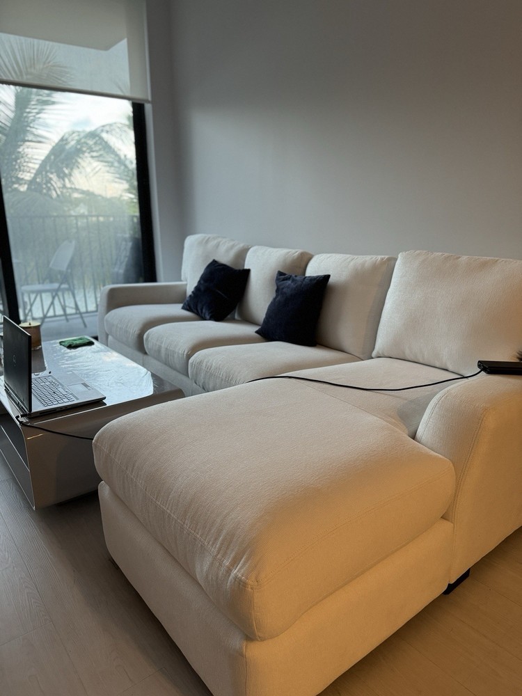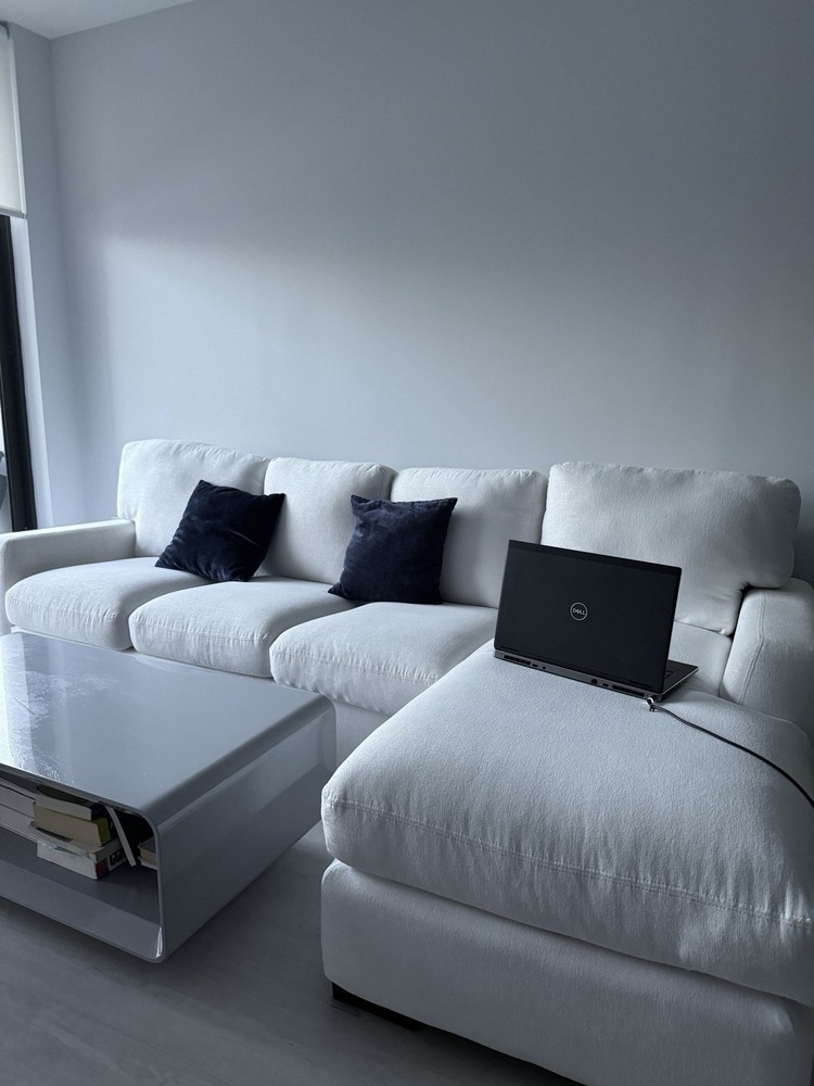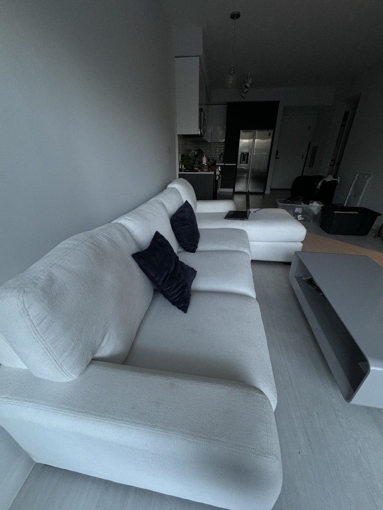 This two-piece modular sofa is a fantastic find! The white fabric still looks fresh and clean after a year of light use. Super comfortable with a modern, versatile design that fits any space. Selling because of a move, but it’s in great condition—well worth the price for such a high-quality piece originally priced at $1200. Perfect for lounging or entertaining!