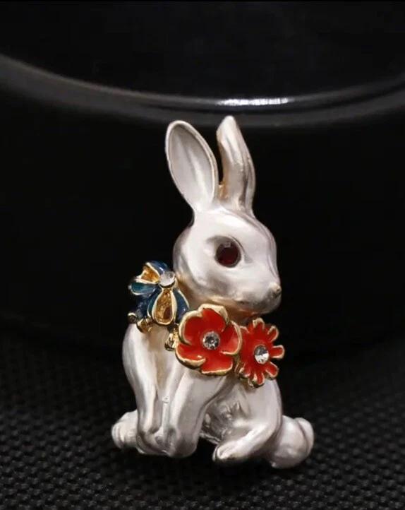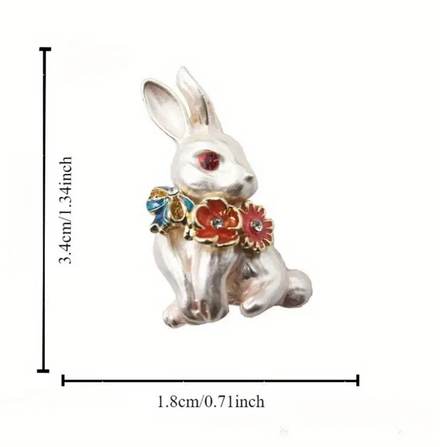 Please note Pictures can be slightly different than the item This item works as a brooch or as a pendant his White Rabbit Brooch features enamel flowers and striking red eyes, making it a charming accessory for women, girls, and ladies. The rabbit shape and colourful design make it suitable for various occasions such as engagement, Mother's Day, parties, Christmas, weddings, anniversaries, birthdays, and Valentine's Day. Crafted from alloy with crystal detailing, this 6cm brooch exudes beauty and showcases intricate animal-inspired craftsmanship from China. Perfect for adding a touch of whimsy to any outfit, this brooch can also be worn as a pendant, offering versatility for different styling options.