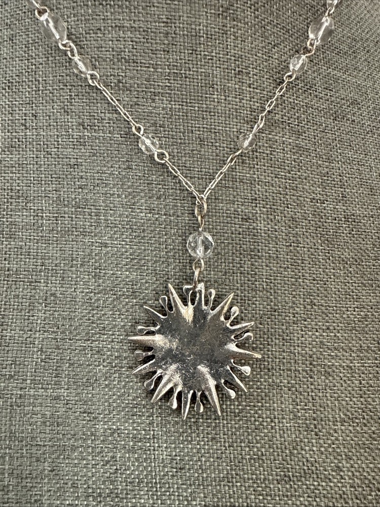 NECKLACE Choker White Clear Beaded Silver Tone Chain with Double Star Pendant with Rhinestones 15.5” See Photos (5682)