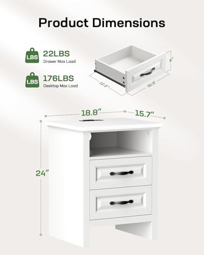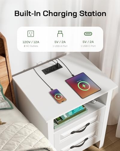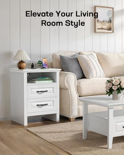 Return Policy Fast Delivery Trusted seller Nightstand Set of 2, Night Stand with Charging Station, Farmhouse Bedside Table with 2 Drawers, Open Shelf, Rustic End Table Storage Cabinet for Bedroom, White Product Description Versatile Nightstand for Many Space - The farmhouse nightstand set of 2 brings rustic charm to any room. As a bedside table it holds your lamp, phone, or book and as a sofa side table its ideal for resting coffee cups or magazines. The rustic nightstand with timeless design fits effortlessly into any space, enhancing your home's farmhouse style. Bedside Table with Charging Station - The wooden nightstand with charging features two AC outlets, a USB port, and a Type-C port, making charging easy on all your devices. This bedside table set is more handy and practical. Additionally, the hidden outlet with a cable management system helps keep your bedroom or living room clutter-free. Ample Storage Drawer - The farmhouse side table for living room offers a desktop (15.7"D x 18"W ), an open compartment and 2 storage drawers. The nightstand using high-quality accessories, smooth-gliding tracks for effortless opening and closing. This ample storage space allows you to organize essentials. Enjoy easy access to your items on this nightstand with drawers. Premium Craftsmanship and Materials - This modern farmhouse nightstand is built to last and features a sleek tabletop that enhances both its visual appeal and strength. The wooden bedside table supports up to 176 lbs, and the drawer can bear 22 lbs and can easily store daily necessities. Every detail of the end table reflects the design to complement your living space. Stable Durable & Easy to Install - Built with stability in mind, our farmhouse nightstands set is made from durable wood that last. With clear, easy-to-follow instructions, this bedside table is quick and hassle-free to assemble. This 2 drawer dresser for bedroom is available in multiple colors to suit your unique style. Shipping Returns Payment Shipping Shipping is FREE to all addresses other than APO/PO boxes in the lower 48 states. All our stock ships from US-based warehouses. Shipped via USPS or UPS (depending on location and package weight) Unless stated otherwise, all orders will ship within 24-72 hours of your payment being processed. Check our feedback to see the great reviews of FAST shipping we offer. Returns Seller does not accept returns Payment We currently accept payment via eBay managed payments only. Once payment is cleared, we will dispatch your shipment within 1-3 business days. Please refer to the "Shipping" tab for more information regarding shipping speed to your destination.