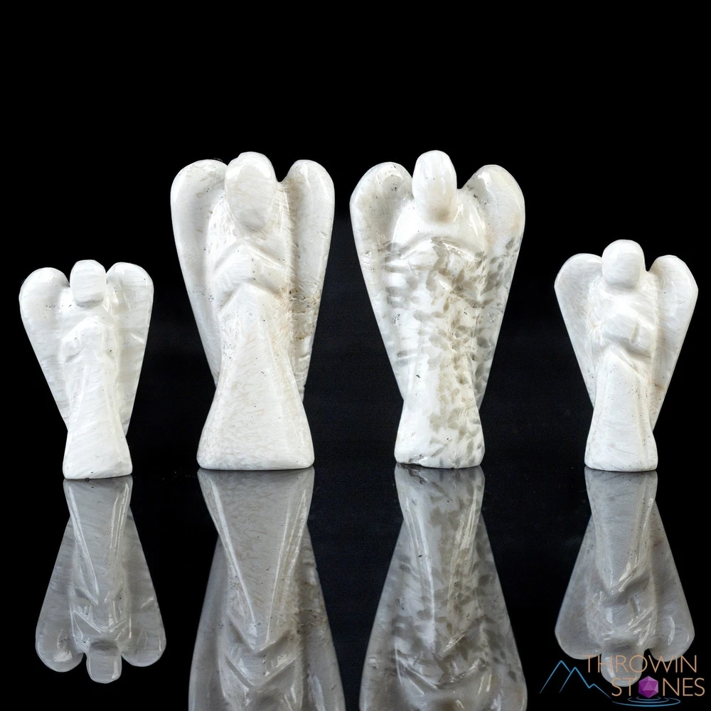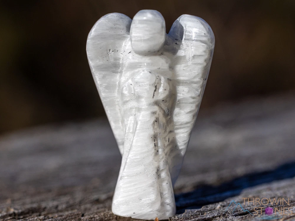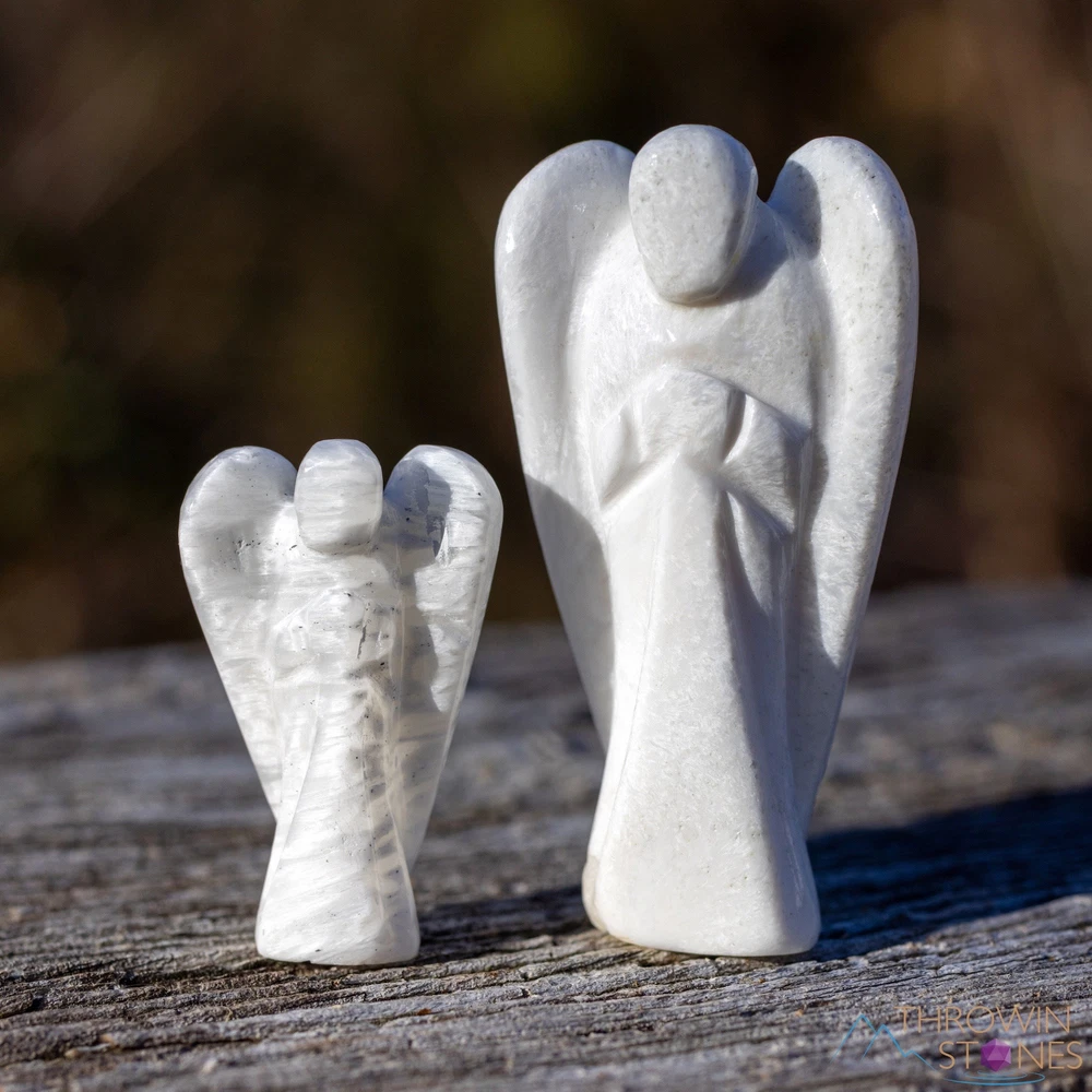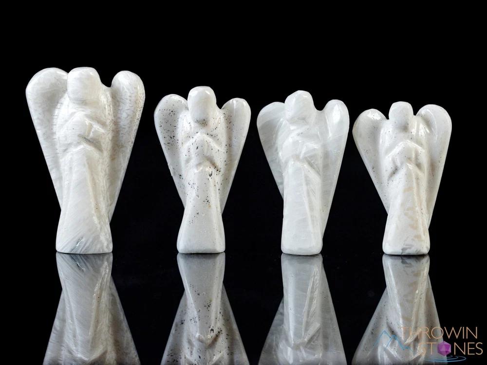 White SCOLECITE Crystal Angel - Healing Guardian Angel Figurines, Decor, E2078 Approximate Height: Extra Small: 1 - 1.5 inches (25 - 39 mm) Small: 1.6 - 2.4 inches (40 - 62 mm) Medium: 2.5 - 3.2 inches (63 - 82 mm) Large: 3.3 - 4.1 inches (83 - 105 mm) Extra Large: 4.2 - 4.9 inches (106 - 126 mm) Approximate Weight: Extra Small: 5 - 10 grams Small: 10 - 25 grams Medium: 30 - 55 grams Large: 40 - 70 grams Extra Large: 55 - 90 grams You will receive 1 stone angel. This listing uses professional photography that samples our collection. YOU WILL RECEIVE A SIMILAR STONE(S), BUT NOT AN EXACT STONE(S) IN THESE PHOTOS. Each stone is unique and beautiful so please expect slight variations in color, texture, and size. Please add a note to your order with any specific requests and we will do our best to fill it from the stock available. Some listings have multiple sizes. Please refer to the size ranges and note whether they are in inches or centimeters. 1 inch = 2.54 centimeters. Macro photography is used to show detail but can make items appear larger than their actual size. The ruler photo shows possible variations of the size and quantity you will receive. Gems and crystals are great for altars, grids, terrariums, pocket stones, gifts, home decorating, collecting and more! They are also wonderful additions to meditation, reiki, and chakra work. Healing crystals are not a replacement for traditional medical treatment. Please scroll down and read our Policies before you purchase. Feel free to contact us with any other questions. Thank you for supporting our small business! ! ABOUT US Hello! Throwin Stones is a family owned and operated business based in the Appalachian Valley of Asheville, North Carolina. We have travelled the world extensively and developed reliable and ethical sources for mineral specimens, crystals, and lapidary rough on every continent. We have been procuring and selling top grade and hard to find healing crystals, minerals and supplies for crystal enthusiasts, artisans, designers, metaphysical healers and collectors internationally for 20 years. We are proud to offer all types of metaphysical and healing crystals and minerals from around the world in our store in addition to beautiful, handcrafted jewelry, cabochons, rough and tumbled stones! If you are looking for pure, high energy crystals, you've come to the right place! As you browse our shop, you'll find the best of the best in Quartz, Sugilite, Garnet, Fluorite, Calcite, Jasper, Amethyst, Citrine, Agate, Garnet, Jade, Turquoise, Lapis, Moonstone, Ruby, Sapphire, Tiger's Eye, Lemurians, Tumbled Stones, Crystal Sphere, Merkaba, Chakra Set, Crystal Healing, Crystal Cleansing, Yoga, Meditation and more! Throwin Stones has exhibited at many of the major minerals shows worldwide including Tucson, Denver, Hong Kong, Tokyo, and Munich. Currently, we are putting our attention towards online platforms by offering worldwide sales of our diverse stone collection, which continues to grow daily! Our focus has always been on finding the new, rare, unique, uncommon and most desirable rocks & minerals. We travel to the Source to obtain our offerings! Have a look around our collection here and feel free to contact us with any questions. We appreciate your visit and from all of us at Throwin Stones, thank you for your business! Sincerely, Rusty & Nicole SHIPPING POLICY We ship worldwide! Shipping occurs five to six days a week from Asheville, North Carolina, USA. Our standard shipping options are: Domestic orders = USPS 1st Class or USPS Ground Advantage; our choice International orders = GlobalPost If you pay for a shipping upgrade, we will use that service. For jewelry and cabochon/gemstone orders over $500, we require signature confirmation. For all orders over $750, we require signature confirmation. We offer discounts for combined shipping. If Ebay does not combine your shipping, please try again from a desktop browser. If Ebay still does not combine your shipping, please contact us. Make sure your ADDRESS IS CORRECT AND COMPLETE. If your package arrives at someone else’s address because you gave us an incorrect address, we are NOT responsible for replacing your lost package. If we receive the package returned to us, you are responsible for the second shipping charge and will be billed before we can reship your package to the correct address. If we do not receive the package returned to us, you may place another order. In order to see shipping options and cost, you may have to complete the purchase process past the payment method in order to view and select shipping options. Shipping carriers may take longer than their service declares. We are not responsible if the shipping carrier is unable to achieve their delivery schedule. If you receive your package and it was damaged during shipping, you must be able to provide a photo of the damaged packaging and/or the damaged item in order for us to have everything we need to file an insurance claim. A refund may not be provided if you are unable to provide photos of the damaged packaging and item for insurance purposes. INTERNATIONAL SHIPPING While we have a quick processing time and ship your order within 1-2 days of receiving it, sometimes tracking will not begin for several days. If your tracking number does not show any movement on your package, please be patient. Carriers will often be in possession of packages but not show updated tracking information, even though the package is indeed moving. As we only have the same tracking information you have, please be patient and wait for your tracking to show movement before contacting us asking where your package is. On average, GlobalPost takes 10-14 days for packages to arrive at their final destination. HOWEVER, sometimes services can have delays, and we have experienced on rare occasions it can take 8 weeks or longer, depending on your country and your customs office. Be patient and please do not leave negative or neutral feedback with