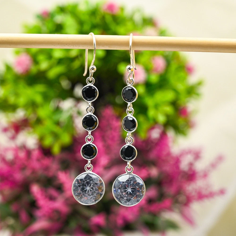 White Topaz, Black Onyx Gemstone Earring 925 Sterling Silver Handmade Jewelry