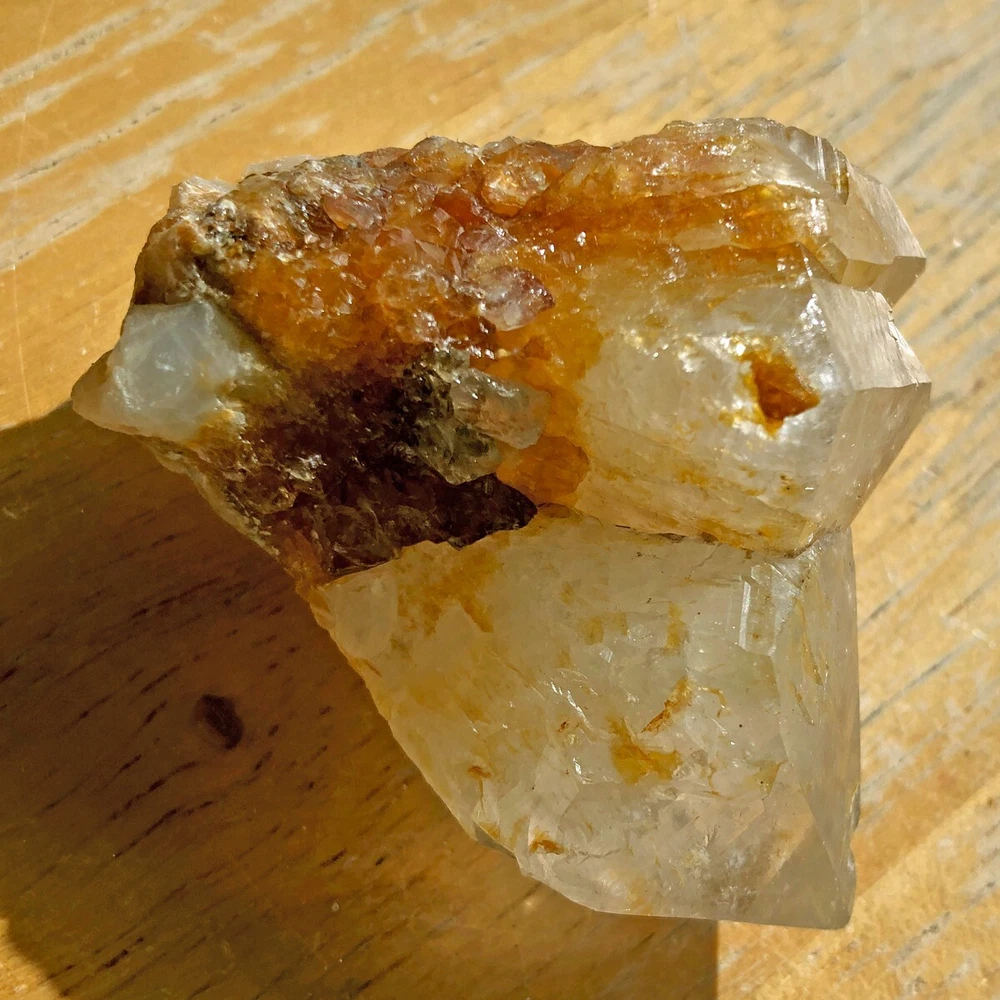 Cactus Quartz or Spirit Quartz Size Approximately 3 cm x 4.5 cm x 5.5 cm 75.2 g View My Other Items For Sale Visit My eBay Store Add me to your Favorite Sellers A cactus or spirit quartz is a quartz crystal that is encrusted by a second generation of smaller crystals grown on its prism faces. These crystals were first discovered in 1986 in the Magaliesberg Mountain Range near Pretoria, South Africa. It occurs as quartz, citrine and amethyst, and comes in a wide range of colors, including purple amethyst, violet amethyst, smoky, milky clear and golden citrine. FAQ/Tips Crystals are priced by quality, color and size. Purple amethyst is more highly prized and will cost more for a smaller lesser quality crystal. Lavender is the most common color and where you will find the best quality/value for price Crystals change colors with changes in type angle and intensity of light. Color may also vary between monitors. Pictures were taken in bright natural light. We do our best to give you many views so you can judge the quality of the given crystals. If you have questions please ask before bidding or buying. Many of the crystals have special color properties: Many have phantoms, not just the ones we?ve indicated. Some have ?floating? purple tips. The placement of darker purple against purple or white crystals appears to change as the crystal is turned. Many are a mixture of citrine and amethyst. The ones called ?Golden Healers? or ?Sunshine? have a rainbow effect on crystal faces. We value your feedback please contact us with problems. Items are returnable. Track Page Views With Auctiva's FREE Counter