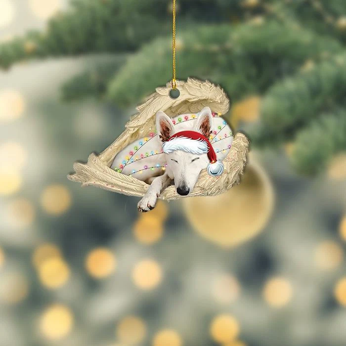 White german shepherd sleeping Angel Wings Christmas dog car Ornament Gift cute