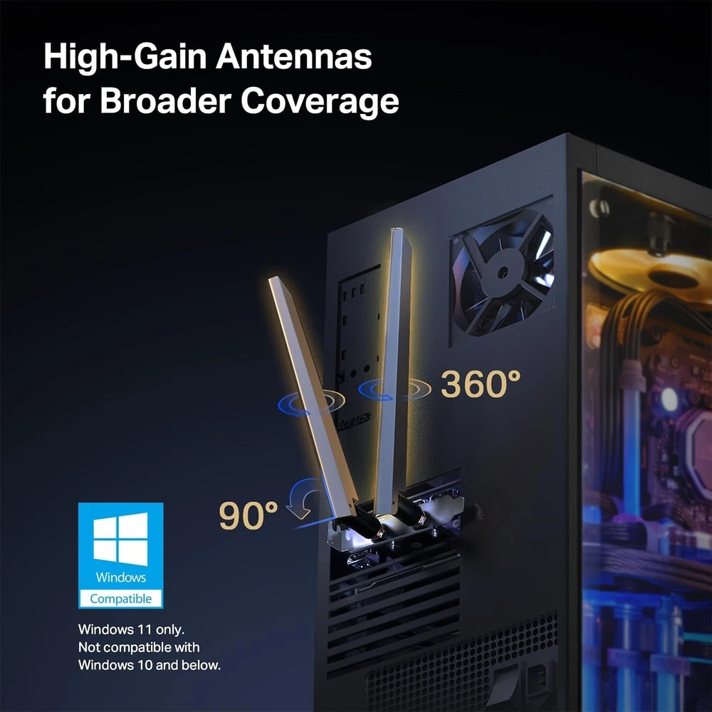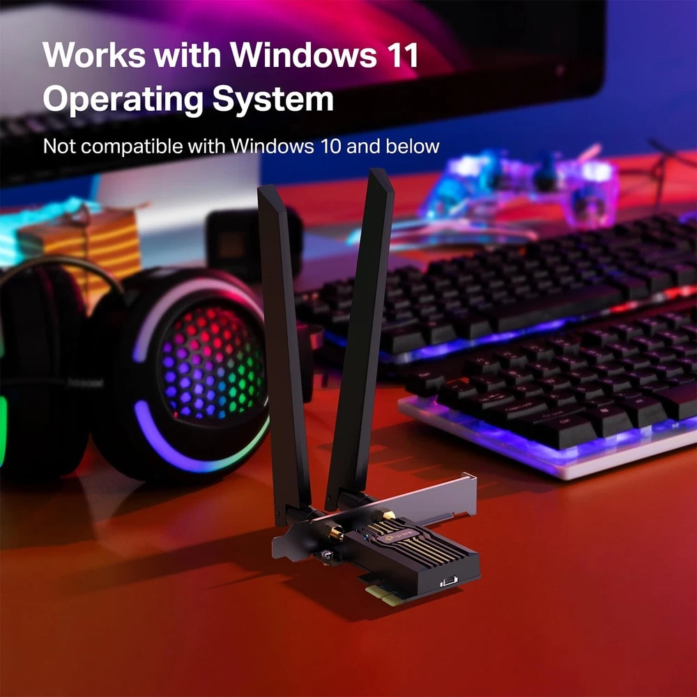 WiFi 7 BE6500 PCIe WiFi Card Archer | Tri-Band Network Card for Desktop PC | Bluetooth | High-Gain Antennas| MLO, | Supports AMD/Intel Motherboard | Not Compatible w/Windows 10 ๐๐ฎ๐ฉ๐๐ซ๐๐ก๐๐ซ๐ ๐ ๐๐จ๐ฎ๐ซ ๐๐ ๐ฐ๐ข๐ญ๐ก ๐๐ข-๐ ๐ข ๐- TBE400E, when paired with a Wi-Fi 7 router, delivers enhanced wireless performance with Multi- Operation (MLO), Multi-Rus, and 4K-QAM. Enjoy accelerated throughput, lower latency, and higher efficiency. ๐๐ฅ๐๐ณ๐ข๐ง๐ ๐ ๐๐ฌ๐ญ ๐.๐ ๐๐๐ฉ๐ฌ ๐๐ซ๐ข-๐๐๐ง๐ ๐๐จ๐ญ๐๐ฅ ๐๐๐ง๐๐ฐ๐ข๐๐ญ๐ก - Maximize connectivity with extreme speeds up to 5764 Mbps on the 6 GHz band, 2882 Mbps on the 5 GHz band, and 688 Mbps on the GHz band.โ ๐๐ฎ๐ฉ๐๐ซ๐ข๐จ๐ซ ๐๐ข๐ ๐ข ๐ซ๐๐๐๐ฉ๐ญ๐ข๐จ๐ง - The features a revolutionary combination of OFDMA and MU-MIMO technology, allowing more devices to connect to your router simultaneously and enhancing your PCโs Wi-Fi efficiency. โ ๐๐๐ฅ๐ข๐๐๐ฅ๐ ๐๐ฅ๐ฎ๐๐ญ๐จ๐จ๐ญ๐ก ๐.๐ - Building on previous high-speed, wide-range Bluetooth capabilities, Bluetooth offers even better reliability and security. Enjoy seamless interoperability with game controllers, heads, keyboards, mouses and more. ยง ๐๐ฎ๐ฅ๐ญ๐ข-๐๐ข๐ง๐ค ๐๐ฉ๐๐ซ๐๐ญ๐ข๐จ๐ง (๐๐๐) ๐๐๐๐ก๐ง๐จ๐ฅ๐จ๐ ๐ฒ - When paired with a WiFi 7 router, frequency bands are combined to deliver enhanced throughput, lower latency, and improved reliability. Enjoy faster, more stable connections across applications. ๐๐ข๐ ๐ก-๐๐๐ข๐ง ๐๐ง๐ญ๐๐ง๐ง๐๐ฌ ๐๐จ๐ซ ๐๐ฑ๐ญ๐๐ง๐๐๐ ๐๐จ๐ฏ๐๐ซ๐๐ ๐ - Two powerful antennas boost Wi-Fi signal range, delivering a fast and smooth online experience from farther away. ๐๐๐ฏ๐๐ง๐๐๐ ๐๐๐๐ฎ๐ซ๐ข๐ญ๐ฒ - The latest Wi-Fi security protocol, WPA3, strengthens encryption to better protect Wi-Fi passwords and defends against brute-force attacks, securing your home network. ๐๐๐ฌ๐ฒ ๐๐๐ญ๐ฎ๐ฉ ๐จ๐ง ๐๐ข๐ง๐๐จ๐ฐ๐ฌ ๐๐ - Complete your PC build with a hassle-free setup designed exclusively for Windows 11. (Not compatible with Windows 10 and below.) ๐๐จ๐ฐ-๐๐ซ๐จ๐๐ข๐ฅ๐ ๐๐ซ๐๐๐ค๐๐ญ๐ฌ - Comes with both a standard and low-profile bracket for mini tower PC cases. Unlock Wi-Fi 7 and Smarter ConnectivityThe Archer brings your desktop into the future with Wi-Fi 7 technology, providing ultra high-speed internet, reduced latency, and strong performance, even in the busiest networks. With two high-performance antennas, Beamforming technology, and advanced features like OFDMA and MU-MIMO, it delivers highly efficient, stable Wi-Fi connections, boosting the performance of your entire network. Plus, with Multi- Operation, enjoy seamless connections across multiple bands, reducing interference and keeping your speeds consistently high. Wi-Fi 7โs 4K-QAM technology increases the total number of data bits that can be encoded for data transmission. โThe inclusion of Bluetooth technology ensures that your devices, such as game controllers and keyboards, connect reliably and securely, while the Bluetooth Low Energy (BLE) feature conserves battery life. ยง Moreover, the Archer uses encryption to keep your personal data safe.**. The Wi-Fi adapter includes a micro USB port for Bluetooth connectivity. Product dimensions are x x inches. Software features include TWT (Target Wake Time), BSS Color, H160, and PID/VID. The network adapter holds regulatory certifications from FCC, IC, VCCI, CE, NCC, BSMI, JRK, and KC. Packaging contents include the Archer , two high-performance antennas, a low-profile bracket, a Bluetooth header cable, a quick installation guide, and a resource CD.