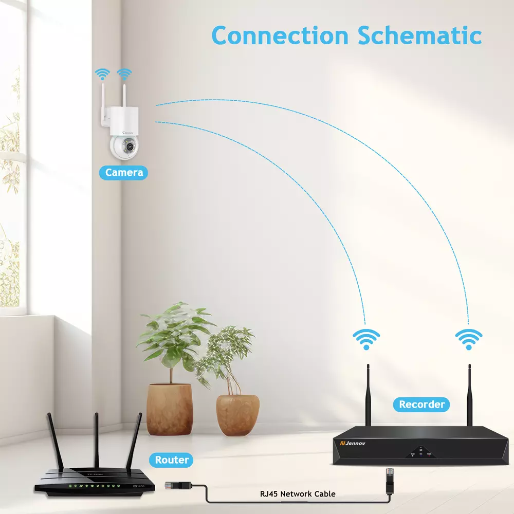Any questions please feel free to contact us at any time. Quick Reply. The power cord is 1 metre by default, if you need an extension cable please contact us, we can give you an extension cable NVR can connect up to 10 cameras What's in the box? Cameras and NVR change according to the set you choose, while power adapters, waterproof covers, and screws get a corresponding quantity 5MP Clear Vision, Day or Night 5MP super HD, even in the darkest nights. Benefit from infrared night vision that reveals details up to 100ft away, featuring professional optical lenses for vivid colors and fine image quality. Human Motion Detection & Real Time Alerts The System can reduce false alarms with a human filtering function and receive instant alerts on your phone when motion is detected. Alert notifications will be sent to your phone immediately if human motion is detected. It supports adjusted sensibility to ensure you won't be disturbed by frequent alarms. 2-Way Audio Talk The wireless security camera system comes with advanced noise-filtering microphone and speaker, ensuring clear and fluent voice communication between the app and the cameras. No matter where you are, you can easily share joy with your kids or interact with your pet. It also allows you to keep unwelcome guests at bay Three Recording Modes Save time and effort over general motion detection. You can also set and apply timed recording or 24/7 recording as needed. EseeCloud Intelligent Playback also makes it easy for you to quickly view each event. Works with Alexa This security system is able to work with Amazon Alexa, allowing engaging voice control to take a glance at your rooms or yards. Auto Pairing and WiFi Repeater Once connected to power, the Wi-Fi cameras will pair with the NVR automatically without any manual setting. The nearest wifi-connected camera can serve as a repeater to bolster the connection distance. Multiuser and Smartphone Online at the Same Time This WiFi camera system supports users online at the same time. If you connect it to your home WiFi network, you can access it remotely via your phone (supports both Android and IOS). You can check the real-time status anywhere and anytime. H.265+ Video Compression,More Save HDD Space Saving up to 50% of storage space than H.264 coding without losing 5MP clarity. You will enjoy smooth & fast live stream without latency. Free Local & Cloud Recording 1TB HDD stores months of video before overwriting old files. Or pay for a paid order cloud storage service and don't worry about hard drive damage and lost playback footage. NVR supports hard drives up to 6TB (not included) NVR Multi-Language Support The NVR support 11 languages ,English Korean, Japanese, Portuguese, Spanish, German, etc. NVR (without monitor) Video & Audio Video Compression: H.265+ / H.264+ IP Video Input 10 CH Video Output HDMI / VGA Audio Output Support 3.5mm Audio Cable Max Playback Channel 4 CH Hard Drive HDD 1 SATA Interface Supports up to capacity Up to 6TB Capacity External Interface Network Interface RJ45 X1 Wireless Antenna 2 Ports (IEEE802.11b/g/n) USB 1X USB 2.0 WiFi 2.4 GHz (Built-in Antenna) General Housing Metal+Plastic Operating Power DC 12V Power Consumption 6W (Without HDD) Working Temperature 14 °F ~ 131 °F/-10 °C ~ 55 °C PTZ Camera Camera Video Pixels 5MP Image Sensor 1/2.8" Progressive Scan CMOS Audio Compression G.711A Video Compression H.265+ Lens 2.8mm Angle of View 110° Audio Input/Output Build in microphone & speaker, support 2 way audio Number of Infrared LEDs 2 Night Vision Distance Up to 100 ft/30 m IR-Cut Filter Yes Ethernet RJ45 X1 General Wireless IEEE802.11b/g/n Housing Plastic Operating Temperature 14 °F ~ 131 °F/-10 °C ~ 55 °C Operating Power DC 12V Applicable Scenarios Indoor/Outdoor Weatherproof Rating IP66 If you'd like to buy other J Series add on camera, you can click on the link below or search for them in the store! https://www.ebay.com/itm/116217725838 (A95) https://www.ebay.com/itm/355819262950 (A61) https://www.ebay.com/itm/355877289316 (P41) P41 A61 A95