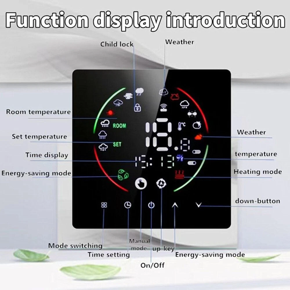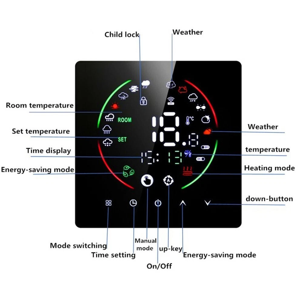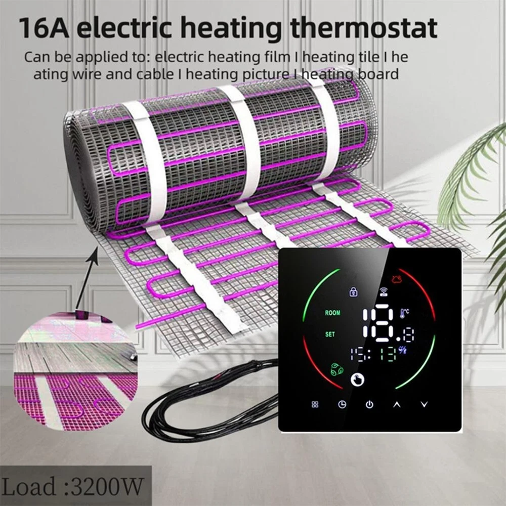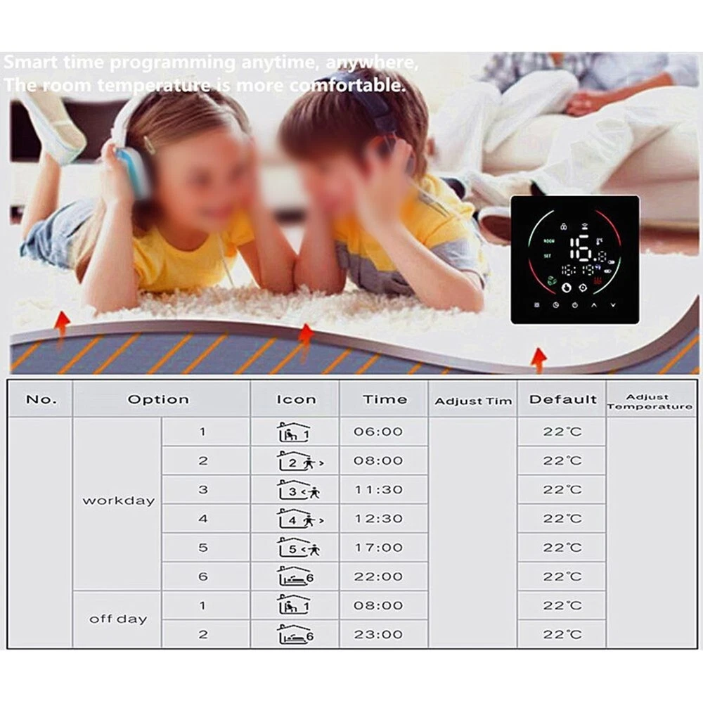 WiFi Enabled LCD Thermostat for Automated Underfloor Heating Management DESCRIPTION Features: *Intelligent Temperature Cont rol: The For TUYA WiFi Smart LCD Thermostat utilizes advanced sensors to monitor ambient temperature, ensure that your underfloor heating system operates efficiently and maintains your desired comfort level. *User-Friendly Interface: Featuring a full-screen touch display, this thermostat offers intuitive controls that make it easy to set and adjust your heating preferences without hassle. *Programmable Functions: With its programmable capabilities, users can create heating schedules, allowing for automatic adjustments based on daily routines and preferences, optimizing energy use. *Child Lock Feature: This thermostat includes a child lock function that prevents unauthorized changes, providing peace of mind in homes with children and ensure that settings remain intact. *Weather and Humidity Monitoring: By connecting to WiFi, the thermostat can provide real-time updates on weather and humidity levels, allowing you to make informed decisions about your home heating and enhancing overall comfort. Specifications: *Product Name:Smart WIFI floor heating thermostat *Material:AB S+PC *Size:86mm*86mm*41mm *Color:Black *Temperature accuracy: ± 1 ℃ *Display: LED *Working environment -5~50 ℃ *Self consumption power<1W *Temperature setting: 5-60 ℃ *Display range: 0-50 ℃ *Load current: Water heating 3A (resistive), Electric heating 16A (with 300cm sensor cable) *Power supply voltage: AC90-240V *Maximum power: 3500W Package Content: 1 * Thermostat 1 * Sensor probe (only 16A electric floor heating include sensor cable) 2 * Screws 1 * Manual Note: 1. The real color of the item may be slightly different from the pictures shown on website caused by many factors such as brightness of your monitor and light brightness. 2. Please allow slight manual measurement deviation for the data. POLICES Shipping Payment WARRANTY We only ship to confirmed ebay Order addresses. Please comfirm that your Order address is in line with your shipping address. Please kindly note that the c ombined shipping is not provided because the shipping fee is calculated by weight. Also, the each additional item means exactly the the same color and size. It takes about 7 -15 working days to US; about 10-30 working days to other countries. Transit time may be a little delayed because of the bad weather and customs inspection . If you do not receive your item within 30 working days since payment finished, please contact us immediately for further assistance. Payment must be completed within 5 days. If you have any problems about payment, please contact us via ebay message. We strive for 100% customer satisfaction! Positive Feedback is very important to us. If you have any questions, p lease feel free to contact us via "Ask seller a question" . We will reply your email within 24 working hours. On Nov 21, 2024 at 07:11:32 PST, seller added the following information: