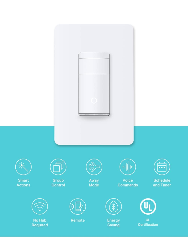 【Advanced Motion Detection】Completely hands-free and smart operation of your connected lights. The switch automatically turns lights on when motion is detected and turns off after a preset time. Ideal for areas such as bedrooms, hallways and restrooms where hands-free operation is ideal. 【Daylight Detection】Smart ambient light detection will sense daylight and prevent lights from turning on during the day. 【Smart Mode & Away Mode】Set different light triggers based on your routine for effortless control. Automatically turns devices on and off at different times to give the appearance that someone is home. 【Works w/ All Bulb Types】600W Incandescent/Halogen, 300W CFL/MLV/ELV 【Voice & App Control】Manage your device with voice commands via Amazon Alexa, Google Assistant, or Samsung SmartThings. Hands-free operation of your lights from anywhere through the free Kasa app. 【Trusted & Reliable】The KS200M is UL certified, meaning rigorous testing is done for safety and certified by a 3rd party laboratory. Includes our industry leading 2-year warranty. Kasa is trusted by over 7 million users worldwide. 【Kasa Smart Action】A part of the Kasa Smart Ecosystem, the switch works with other Kasa devices, so you can set smart actions, and groupings with your other Kasa devices. 【App-Guided Setup】Neutral wire is required, standard wall plate size. No need to understand complex switch wiring or master vs auxiliary switch configurations; The Kasa app guides you through easy step by step installation. Need 2.4GHz Wi-Fi connection. The KS200M is smart switch with an advanced motion and ambient light sensor built in. Ideal for areas where hand-free operation is ideal, the KS200M is perfect for those who want more automation in their home, including those with limited mobility or those with children in the home. Walk into a room and have your lights automatically turn on. Lights can be programmed to turn off after a set time without motion detection to save on electricity. The smart switch also includes an ambient light sensor that will detect daylight conditions and prevent the lights from turning on during the daytime if desired. Fully customize your experience with settings based on your routine. Best of all, the KS200M is hands-free, voice controllable, and app accessed. From Amazon Alexa, Google Assistant, to Samsung SmartThings, the Kasa Smart KS200M gives you convenient voice controls.You can expect Kasa Smart quality with the KS200M which has undergone rigorous safety testing and has been UL certified by 3rd party Underwriter Laboratories. In addition, the device is backed by an industry leading 2-year limited warranty. If you are one of the 7 million plus Kasa Smart users, you will also appreciate that the KS200M is compatible with other Kasa devices meaning, you can set groups, and smart actions to work in conjunction with other Kasa Smart devices.Take control of your smart lighting, and have total automated freedom with the Kasa Smart KS200M Smart Switch with motion sensor.This which can achieve more automation, intelligence, and personalized settings. Standard: IEEE802.11 b/g/n Wi-Fi Standard: 2.4 GHz Wi-Fi only Max load: 600W INC, 300 W CFL. Power Supply: AC 100~125 V, 50/60 Hz Neutral Wire Required. 2-year warranty.