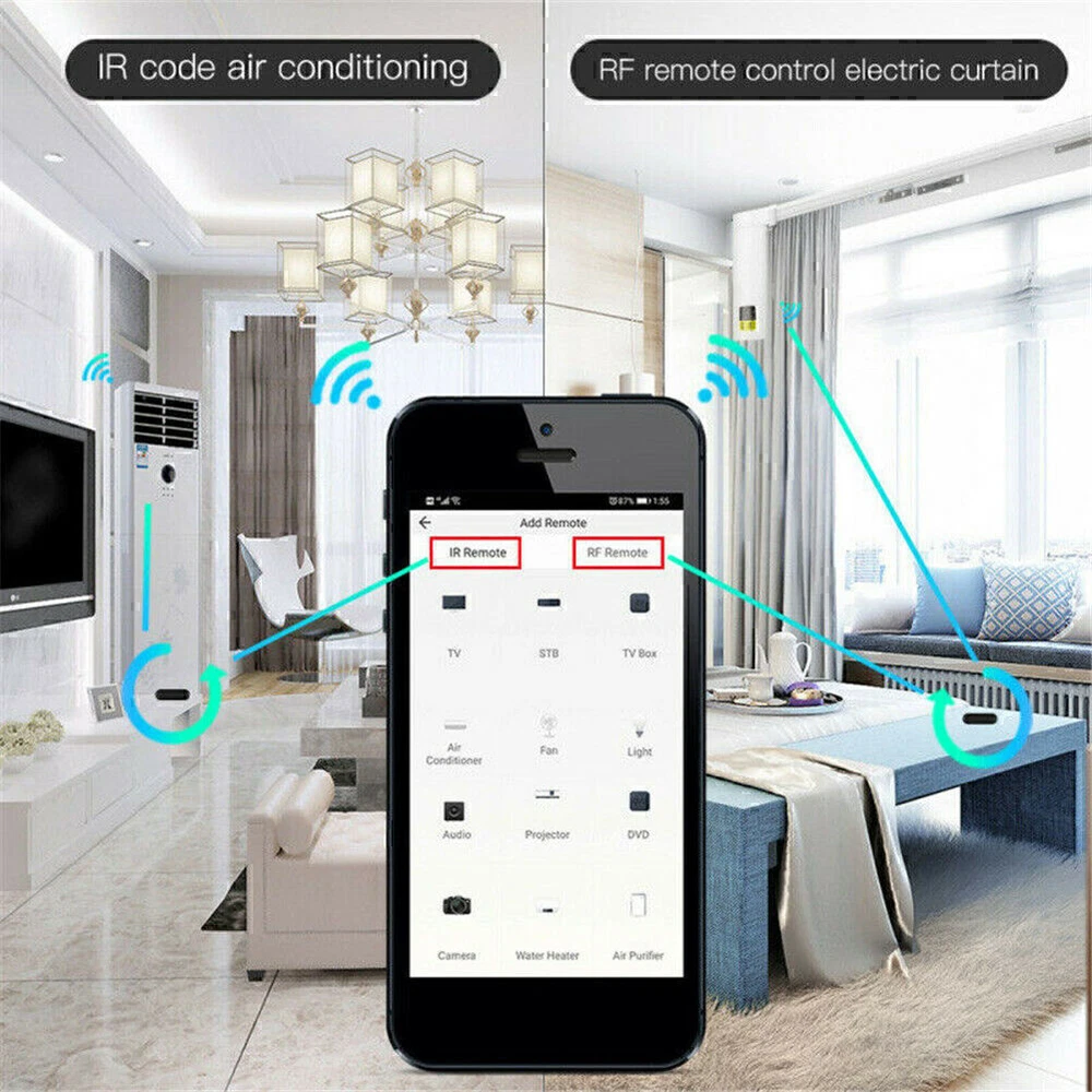 WiFi RF and IR Remote Controller for Appliances with Tuya Smart Life App and Voice Control