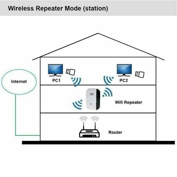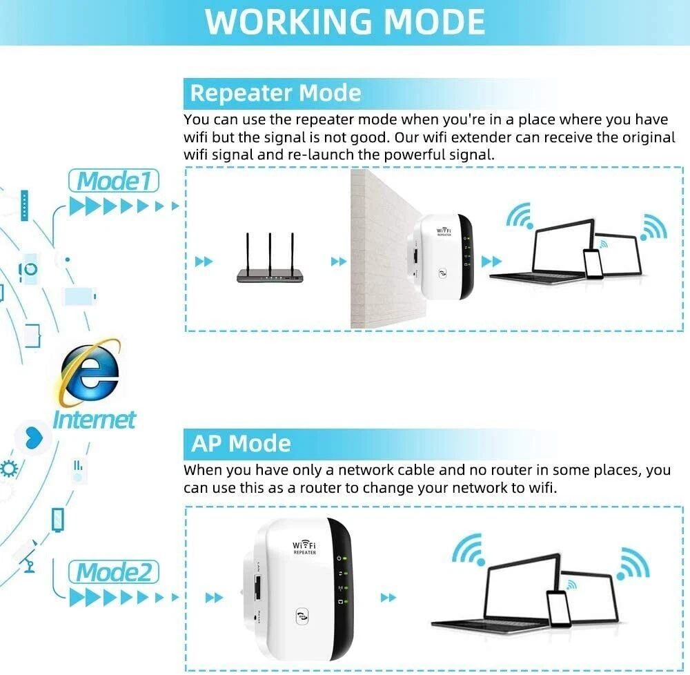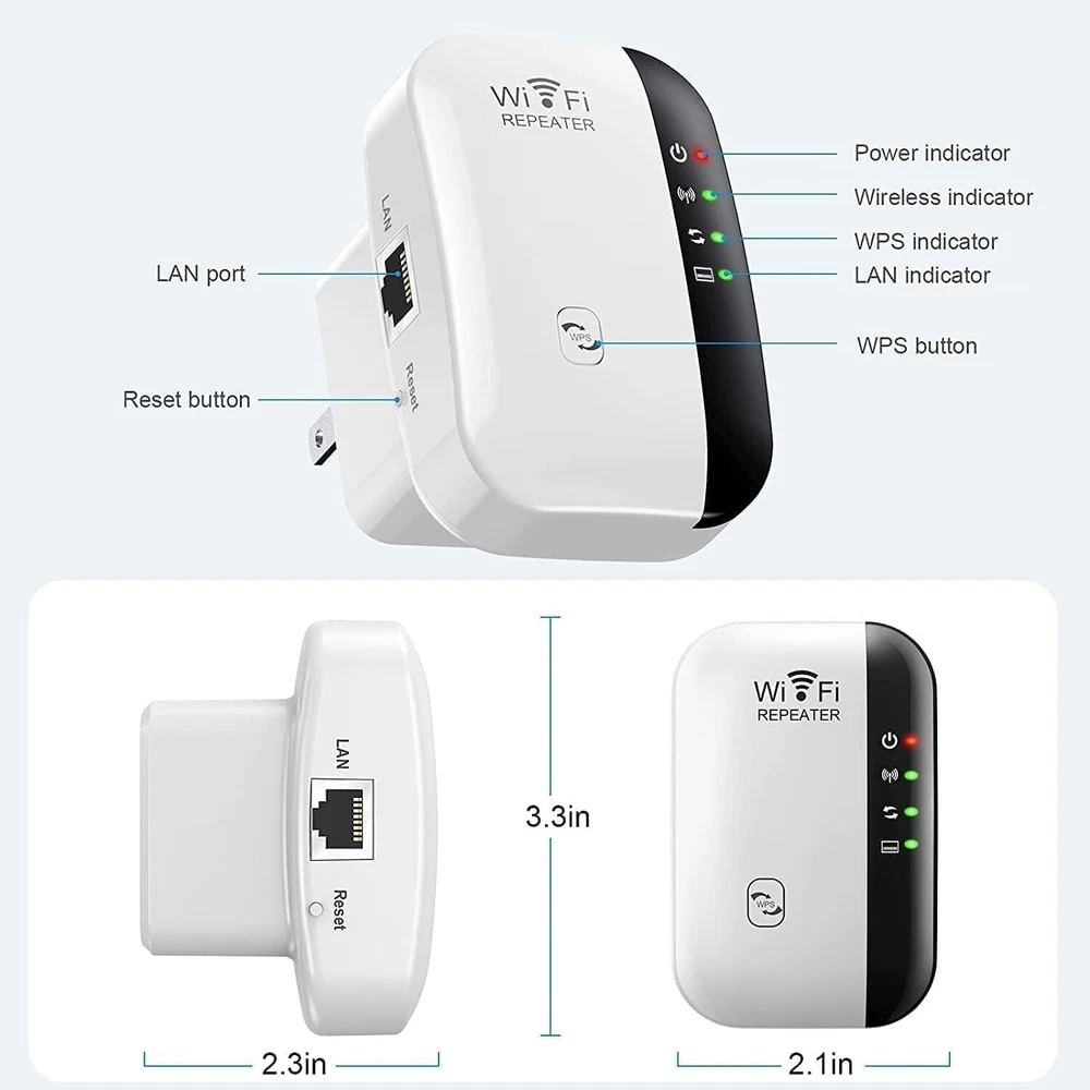 WiFi Range Extender Internet Booster Wireless Signal Repeater Specifications: The Wi-Fi Repeater is a Combined Wired/Wireless Network Connection Device Latest software wizard for easy setup Access to Wireless standard 802.11n with Wireless Transmission Speeds of Up to 300Mbps Easy to Extends the Range of your WIFI Network, No Worry about Obstacles Weakening your WIFI Signal Also Works Well with Other 11b/g and 11n Protocol Wireless Products Improves Wireless Coverage in all WLAN Networks Provides up to 300Mbps Transmission Rates Downward complies with 802.11g (54Mbit/s) and 802.11b standard (11Mbit/s) Operating Temperature : 0ºC~40ºC Storage Temperature: 10~70ºC Relative Humidity (Operational) :10%~90% , noncondensing Relative Humidity (Storage) :10%~90% , noncondensing Support 2.4 GHz WLAN networks Support Wireless Repeater Mode and Standard AP Mod Wireless access point or network extender to bring WIFI to your home, study, or office Antennas integrated Maximum WLAN security with WPA2, WPA, and WEP (128/64) Use it to Extend the Range of your WIFI Network Over a Wider Area or Eliminate dead-spots due to low signal power No Trailing Wires around the place Distance: Outdoors 300m, Indoor 100m (According to the Actual Environment Change) Package Includes: 1x Wireless WIFI Extender Repeater (US Plug) 1x Installation Manual in case the quick installation guide wasn’t helpful, we can guide you through the installation process. 1) Plug the Wi-Fi extender into the outlet closest to your router 2) Using an ethernet cable, connect the extender to your router (not modem) 3) Hold down the WPS button for about 5 seconds 4) Go to the Wi-Fi / Network selection at the bottom-right of your screen 5) Connect to the network that says “WiFi-Repeater” 6) Enter a web browser, then copy and paste the following in the address bar http://192.168.10.1/ 7) Type in “admin” in all lowercase letters for BOTH username and password 8) This will bring you to a screen with colored boxes, click the box that says “Repeater Wizard” 9) Select which Wi-Fi network you want to extend the range of, then type in your Wi-Fi password where it says “Key” -If you don’t know your password, that’s fine. Just make up a new one. Once you do it will be the password to your original network, as well as your extension. 10) Click “Save” and then “Apply”. Just let the Repeater/Extender restart, and you are good to go! Say goodbye to weak or broken signals, you only need this wifi booster !