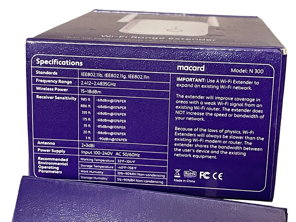 HomeWiFi Range Extender Macard N300 300Mbps Dual Band Ethernet Brand New Lot of 2