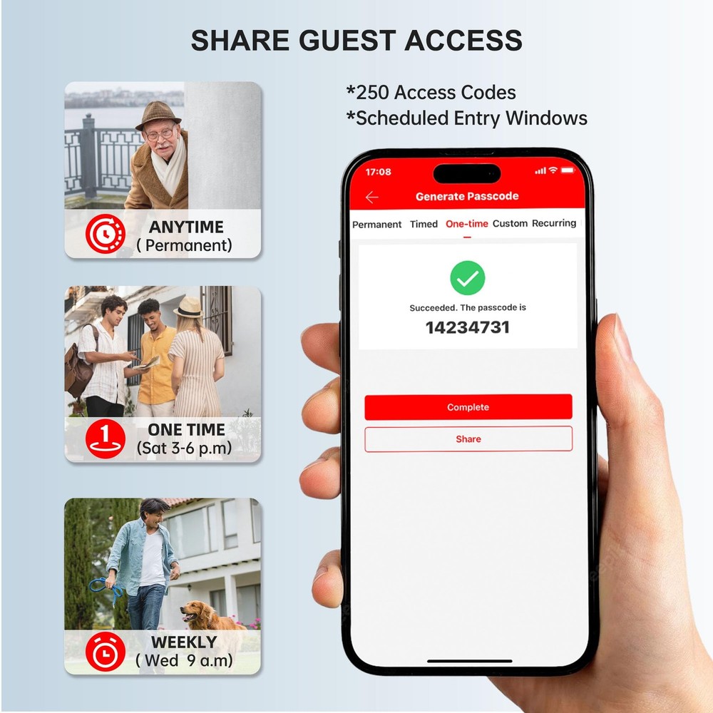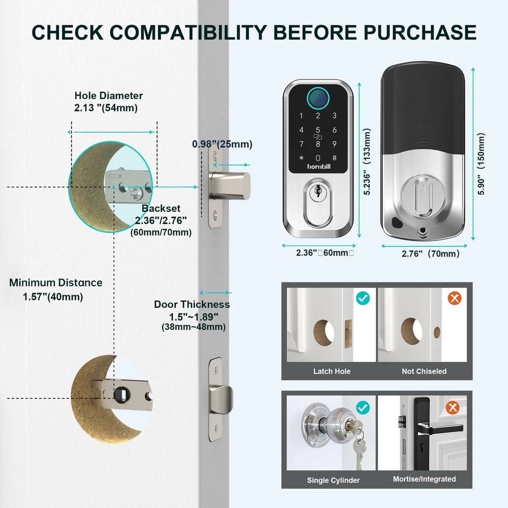 Wi-Fi smart door lock is a modern security solution that allows you to control access to your home or office remotely. With features like smartphone compatibility, keyless entry, and real-time notifications, smart locks provide convenience and peace of mind. You can grant access to guests or service providers from anywhere, ensuring that your space remains secure while offering flexibility. Many models also integrate with smart home systems, enhancing overall home automation. 【9-in-1 Smart Keyless Entry Door Lock】Integrates with Next Lock App. Features fingerprint recognition, passcodes, IC fobs, keys, auto-lock, one-touch locking, WiFi, Bluetooth, and voice control. Manage your lock easily from anywhere with the app. 【Voice-Controlled Security for Your Home】Smart Lock integrates smoothly with front/back doors. Includes G2 gateway for 2.4GHz WiFi. Control with Alexa or Google Home voice commands. Easily upgrade your home security with this smart lock. 【WiFi Remote Unlock/Lock】Remotely unlock ’s fingerprint door lock—perfect for vacations or when away. Keep the gateway within 16ft (10ft if walls block) of the lock and router for seamless 2.4GHz WiFi. Stay connected and in control from anywhere. 【Biometric Unlock Revolution】Unlock your smart deadbolt in 0.3 seconds with a fingerprint. Store up to 100 fingerprints in the Next Lock App for guests and backups. Say goodbye to lost or copied keys, and enjoy hassle-free access. 【Grant Flexible Temporary Access】Offer temporary access codes for dog walkers, guests, housekeepers, or staff. Assign up to 250 passcodes and revoke them anytime. No more worrying about extra keys floating around, you're in control. 【Auto-Lock & 1-Touch Locking】Never worry about forgetting to lock your door again. Set the auto-lock to engage 5-900 seconds after closing, or tap the "#" sign on the keypad for immediate locking. Perfect for busy lifestyles or added peace of mind. 【Low Battery Alerts & Type-C Emergency Charging】Monitor battery life in the Next Lock App. Get notified when battery drops below 20%(Uses 4 AA alkaline batteries not included in package). Includes a Type-C backup charging port for temporary power, ensuring you're never locked out due to a dead battery.