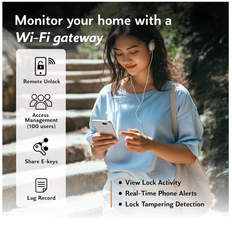 New Keyless Entry Door Lock: Experience a variety of entry options with up to 100 customizable PIN codes, remote control via app, traditional keys, and smart home integration with Amazon Alexa and Google Home. Control Your Locks from Anywhere: Thanks to the included Wi-Fi gateway, the Lio Home Smart Door Lock allows you to use voice commands through Amazon Alexa or Google Home. You can also unlock your door remotely in seconds via the Lio Home app—even while you're away on vacation. Built for High-Security: Crafted from durable materials and ANSI-certified, this lock ensures long-lasting security and reliability, day and night. Flexible Access Codes: The Lio Home app lets you create Permanent, Timed, or One-Time codes, perfect for managing access for family members, visitors, short-term rental guests, or office spaces. Hassle-Free Installation: Installing the Lio Home Smart Lock is quick and easy. With just a Phillips-head screwdriver, you can have it set up in 5–10 minutes—no additional drilling required. Upgrading your front door security has never been simpler.