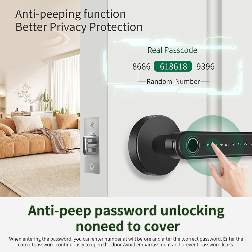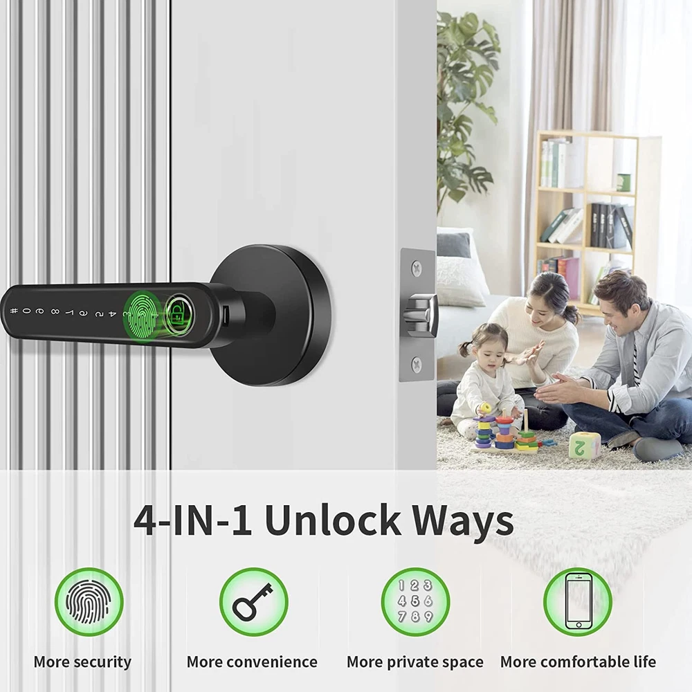 Fingerprint Smart Door Lock with Handle,Keyless Entry Door Knobs, Biometric Door Lock with keypad,App, Passcode,Key, Bluetooth,Digital Deadbolt Door Lock for Pantry Bedroom Home Office Hotel Manufacturer Zhongshan Yishigao Decoration Hardware Co., Ltd Part Number JT-1 Lock Type Fingerprint Special Feature Anti-corrosion, Fingerprint Material Zinc Uses For Product Install fingerprint door lock for pantry indoor,Home,Hotel,Office,Indoor Door, Apartment and Other Private Spaces Style Modern Color Black Number Of Pieces 1 Finish Type Polished Included Components Interior and exterior fingerpints lever, Adjustable latch from 60-70mm, 2* Mechanical Keys, Screws Accessories and Manual Controller Type SmartThings, IOS, Android Shape Rectangular Control Method App, Remote, Touch Country of Origin China Item model number T8 Size normal Finish Polished Type of Bulb LED Cutting Diameter 6.34 Inches Certification Energy Star Special Features Anti-corrosion, Fingerprint Usage Inside; Professional Batteries Included? No Batteries Required? Yes Assembled Diameter 6.34 Inches Item Weight 2.14 pounds About this item • 4 Ways To Unlock :The fingerprint door knob have 4-in-1 door lock offers multiple ways to access your home, including fingerprint thumbprint recognition, password access, smartphone control, and a physical key (2 included). With a fingerprint false recognition rate <0.001%, the lock recognition speed <0.5s can open the door within 1 second. You can also add up to 50 groups of fingerprints,eliminating the need to carry a key with you when you leave the house. • EASY INSTALLATION : The Keyless entry fingerprint door lock Designed to fit US standard doors, the lock has a backset of 2-3/8" (60mm) and 2-1/8" (70mm) and is suitable for door thicknesses of 1-3/8" to 2-1/8" (35mm - 55mm). It requires no wiring or drilling and can fit both left- and right-handed doors. • Multiple Fingerprint Recognition The smart door knobs offers quick and convenient access to your home, with recognition of fingerprints in just 0.5 seconds. Additionally, multiple fingerprints can be added to the lock, allowing multiple people to have access. These fingerprints can be managed through the accompanying smartphone app, making it easy to control who can unlock the gate door. • UNLOCK WITH SMART APP : The keyless entry door knob can be controlled with a smart phone, allowing you to unlock the gate door using the mobile app. You can also set temporary passwords and share them with friends, visitors, or housekeepers. It's suitable for families, hotels, schools, and garages and supports both iOS and Android devices. • EMERGENCY CHARGING : The smart lever door lock handle requires 4 AAA batteries(not included) and has a low battery reminder function. It also has a USB interface for emergency charging, ensuring that you can always access your home even in the event of a power failure. 23092A102 Terms of Sale Purchase: Being an informed Buyer makes you a Happy Customer. All Manufacturers Product Warrantee’s or Guarantees if any, expressed or implied, including but not limited to performance, service, durability, etc.,. associated with the product are strictly that of the products manufacturers and or its distributors or service network and not that of the seller for the product listed here for sale. Product Description: The Seller is merely posting openly found information relating to the product either from the makers marketing information or product information from other sources for helping the buyer to review, then determine by that information or other information the buyer finds through personal research here or elsewhere to determine if the product is suitable for the buyers own wants, needs, desires, usage, etc. Sellers only obligation is to pass onto the buyer the product listed after voluntarily purchase of the product by the buyer from the seller after payment is made. It is solely the responsibility of the Buyer to do the Buyers own due diligence in product research and comparison of this product against all other products available to determine if the product best fits the Buyers needs before purchase, not after, as the Buy Button is a Purchase Contract. Buyer agrees to abide by the terms of this sale as described here in where the sales terms are "as is, where is" basis and there are no returns, exchanges, refunds. with no warranty or guarantees expressed or implied, including but not limited to any warranty of merchantability or fitness for any particular purpose" from or by the seller unless specifically outlined by the seller in the products listing. ActionBids, Seller since: May 2000