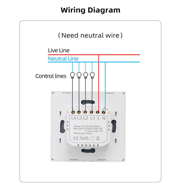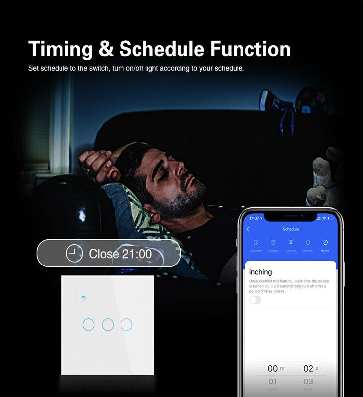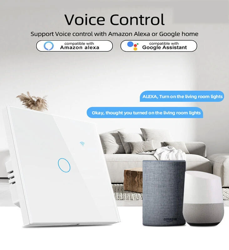 Specifications: Color:Clear Crystal White Glass Product material: high-grade tempered glass, imported ABS fire-retardant injection molding material Dimensions: 86mm*86mm*35mm (height*width*thickness) Rated Voltage: 125v / 50-60Hz Timer control: 24 hours Style: Single Room: Kids Room, Any Room, Basement, Bathroom, Bedroom, Dining Room, Garage, Indoor/Outdoor, Kids Room Type: Touch Switch Rated load: 3-500W/circuit (relay zero live wire) 3-300W/circuit (thyristor single live wire) Rated voltage: 90-250v AC Rated frequency: 50/60Hz Processing chip: imported Ultimate Beauty: Ingenuity design assures highly texture beauty, Toughened Glass Surface Prevents the scratch from knives or something hard, damp proof available for humid operation. Voice Control: Once you have this switch, you can connect it with Amazon Alexa (Amazon Echo/dot/tap) or Google Assistant for voice control. Timing Function: Take full control of your home or office lights thanks to the schedule timer that will allow you to plan the exact time to turn lights and appliances on/off automatically Wi-Fi Remote Control: You can use 'Smart Life' app (APP Store or Google Play) in your smartphone to control the wall switch wirelessly with Wi-Fi or 4G network.no hub required. Note: This smart switch requires a neutral wire in your switch boxes to operate correctly. Requires a 2.4GHz Wi-Fi network connection, Only compatible with 1 gang switch box, not compatible with standard 2/3/4 gang switch plate. Package includes: 1-10PACK x 1/2/3/4 Gang WiFi Smart Wall Touch Light Switch Glass Panel For Alexa/Google APP (Select how many gangs in the menu) 1 x User Manual Buyer Note: If you are satisfied with our service, we appreciate you leaving us a positive feedback and 5 star rating review! Your opinion is important to the success of our business. If you are not satisfied with the product or have not received the product for more than 35 days, please contact us to resolve, we will do our best to solve. We are sure to come up with a satisfactory solution. Please contact us first before leaving cold feedback or good feedback of 1-3 stars and opening the case. We'll do our best to solve your problem. Because we believe that everything can be solved through communication. Thank you very much!