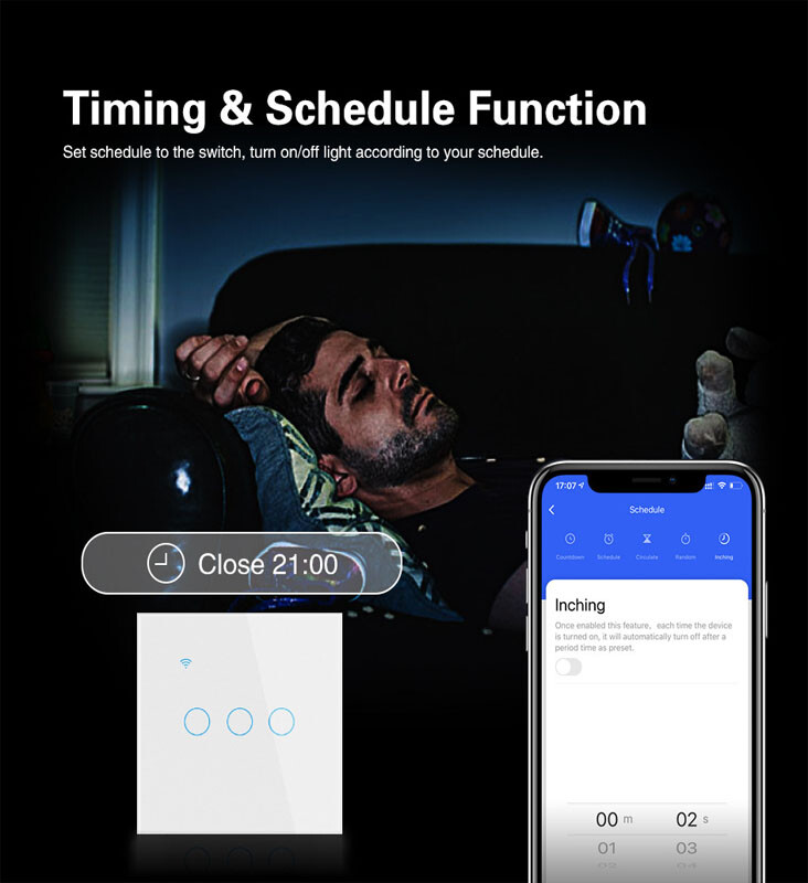 eBay Specifications: Color:Clear Crystal White Glass Product material: high-grade tempered glass, imported ABS fire-retardant injection molding material Dimensions: 86mm*86mm*35mm (height*width*thickness) Rated Voltage: 125v / 50-60Hz Timer control: 24 hours Style: Single Room: Kids Room, Any Room, Basement, Bathroom, Bedroom, Dining Room, Garage, Indoor/Outdoor, Kids Room Type: Touch Switch Rated load: 3-500W/circuit (relay zero live wire) 3-300W/circuit (thyristor single live wire) Rated voltage: 90-250v AC Rated frequency: 50/60Hz Processing chip: imported Ultimate Beauty: Ingenuity design assures highly texture beauty, Toughened Glass Surface Prevents the scratch from knives or something hard, damp proof available for humid operation. Voice Control: Once you have this switch, you can connect it with Amazon Alexa (Amazon Echo/dot/tap) or Google Assistant for voice control. Timing Function: Take full control of your home or office lights thanks to the schedule timer that will allow you to plan the exact time to turn lights and appliances on/off automatically Wi-Fi Remote Control: You can use 'Smart Life' app (APP Store or Google Play) in your smartphone to control the wall switch wirelessly with Wi-Fi or 4G network.no hub required. Note: This smart switch requires a neutral wire in your switch boxes to operate correctly. Requires a 2.4GHz Wi-Fi network connection, Only compatible with 1 gang switch box, not compatible with standard 2/3/4 gang switch plate. Package includes: 1-10PACK x 1/2/3/4 Gang WiFi Smart Wall Touch Light Switch Glass Panel For Alexa/Google APP (Select how many gangs in the menu) 1 x User Manual Buyer Note: If you are satisfied with our service, we appreciate you leaving us a positive feedback and 5 star rating review! Your opinion is important to the success of our business. If you are not satisfied with the product or have not received the product for more than 35 days, please contact us to resolve, we will do our best to solve. We are sure to come up with a satisfactory solution. Please contact us first before leaving cold feedback or good feedback of 1-3 stars and opening the case. We'll do our best to solve your problem. Because we believe that everything can be solved through communication. Thank you very much!