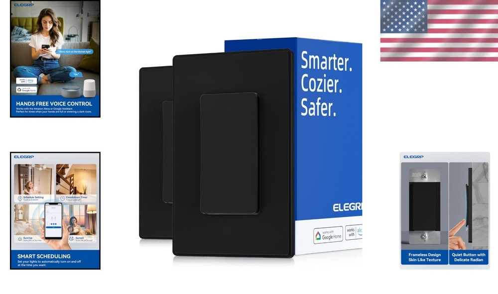 Voice-Controlled Smart Light Switch - Wi-Fi Enabled, Certified, Black, 2 Pack ‹ › ‹ › ‹ › ‹ › ‹ › ‹ › ‹ › ‹ › ‹ › Voice-Controlled Smart Light Switch - Wi-Fi Enabled, Certified Color: Black Quantity: 2 Pack Product Features: APP Remote Control: Remotely control your lights anytime, from anywhere using your smartphone. Forget about leaving lights on while you travel or are away from home. Hands-Free Voice Control: Seamlessly integrate with Amazon Alexa or Google Assistant, allowing you to control your lights effortlessly with simple voice commands. Smart Scheduling: Set custom schedules or countdown timers, syncing with sunrise and sunset for automated lighting that welcomes you home. Modern Design: Features a delicate radian and exceptionally quiet rocker, providing a stylish and technological touch to your home décor. The skin-like matte finish complements contemporary aesthetics. Easy to Install: Step-by-step installation instructions make wiring quick and effortless. Compatible with both single pole and 3-way setups (Neutral wire required for installation). Wi-Fi Compatibility: The switch operates on a 2.4G network (NOT 5G), with no hub required for operation. Input power: 120V AC 60Hz. and certified for your security. Why Choose Our Smart Light Switch? Transform your living space into a haven of convenience and elegance with our Voice-Controlled Smart Light Switch. Gone are the days of manually flipping switches; this innovative solution allows you to manage your home’s lighting through voice commands or remotely via smartphone. Whether you're juggling groceries, relaxing in a chair, or arriving home at night, our smart switch enhances your lifestyle. Designed not just for functionality but with a modern aesthetic, it seamlessly integrates into any room. Enjoy effortless control and tailored lighting—a powerful addition that simplifies your everyday life. Don’t wait to elevate your home! Order your Voice-Controlled Smart Light Switch today and experience the brilliance of smart living! Shipping Free & Fast Shipping - We offer free shipping to most of the USA with a normal delivery time of 3-7 days. However, due to the current situation, additional delivery time (up to 3 weeks) may be required for some items. Alternative Carriers - We may use alternative carriers (e.g. USPS, FedEx, UPS, etc.) to ensure your package arrives safely and on time. Due to the use of multiple carriers, we are unable to provide a tracking number automatically. Handling Time - Orders are processed and shipped within 1-2 business days of receiving cleared payment. Shipping Restrictions - Shipping to Alaska, Hawaii, Puerto Rico, Guam, and other US territories may incur shipping charges or delivery restrictions. Please contact us before ordering, or your order can be refunded/cancelled. State Restrictions - There may be restrictions based on your state of purchase. For example, certain items may not be shipped to California due to state regulations. Contact for Tracking Updates - If you require tracking updates or have any concerns about the delivery of your order, please feel free to contact us, and we will be happy to assist you. Return 30-Day Hassle-Free Returns - We want you to be completely satisfied with your purchase. If you are not, you can return the item within 30 days of receiving it for a full refund or exchange. Easy Return Process - To start a return, simply contact us and we will provide you with a prepaid return shipping label and detailed instructions. Restocking Fee - There are no restocking fees for returns. However, the buyer is responsible for return shipping costs if the return is not due to a seller's error. Refund Processing Time - Refunds will be processed within 5 business days of receiving the returned item in its condition. Payment We accept all major credit cards, PayPal, and Apple Pay for your convenience. Your payment information is secure and encrypted to ensure a safe and seamless transaction. Please complete your payment within 3 days of purchase to avoid any delays in shipping. Feedback Your feedback is extremely important to us. We strive to provide the best products and customer service possible. If you are satisfied with your purchase, please take a moment to leave us a positive review. If you have any concerns or issues with your order, please contact us before leaving negative feedback. We are committed to resolving any problems and ensuring your satisfaction. Contact Us If you have any questions or concerns, please feel free to out to our customer support team. You can contact us through the eBay messaging system. We are available Monday to Friday, 9:00 am to 5:00 pm EST, and we will do our best to respond to your inquiry within 24 hours. Buy it now and enjoy a pleasant shopping experience! Item Diameter: 5.16 x 3.35 x 2.36 inches Item Weight: 14.89 ounces Unit Quantity: 2 Material: Brass,Plastic Features: Wireless,APP Control,Hand Free Voice control,Smart Scheduling Department: Unisex Baby & Toddler,Boys,Girls,Kids,Teens,Adults Smart Home Protocol: Wi-Fi Smart Home Compatibility: Amazon Alexa,Google Assistant Type: Smart Light Switch Lighting Technology: LED Number in Pack: 2 Current Type: AC Connectors: Crimp Voltage: 125 V Color: Black Power Source: Wall Plug-In Installation Area: Indoor Style: Modern
