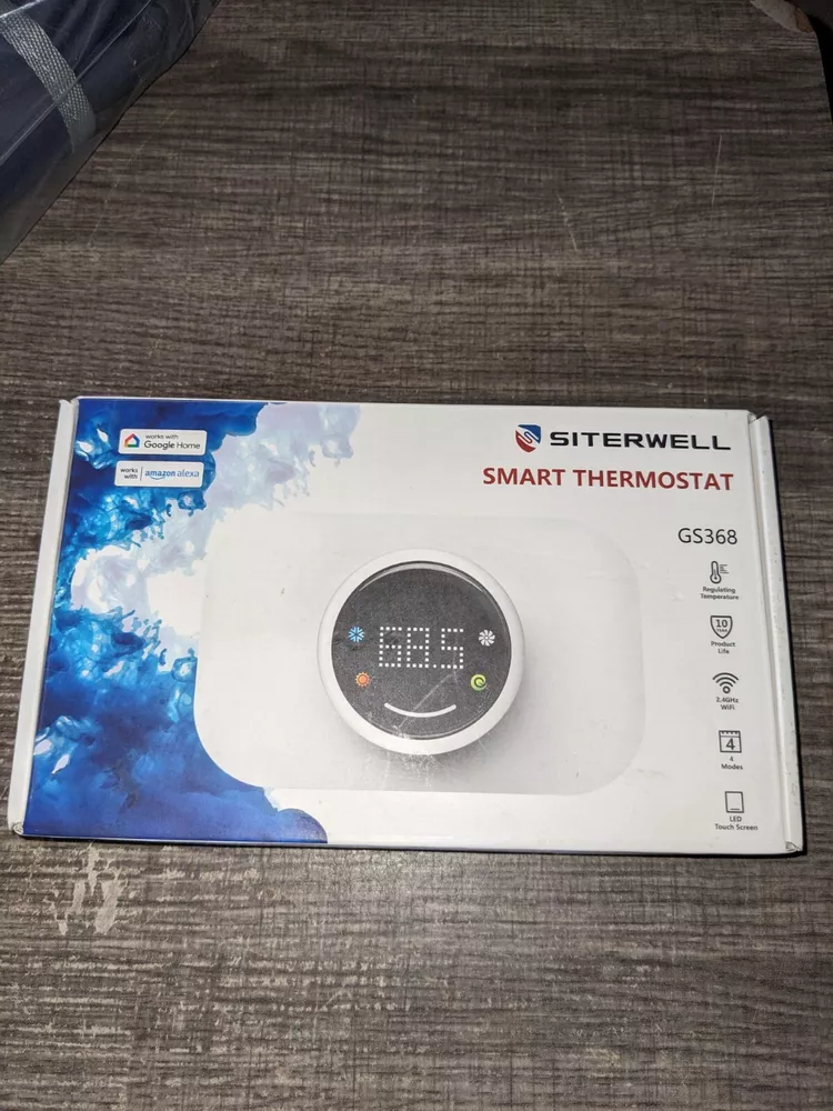 Display has minor scratches. SITERWELL Smart Thermostat for Home, WiFi Programmable Digital Thermostat, Compatible with Alexa and Google Assistant, Suitable for 24V Heat Pumps or Single Level HVAC System (C-Wire Required) TAKE CONTROL OF YOUR HOME'S TEMPERATURE: Say goodbye to constantly adjusting your thermostat and experiencing uncomfortable temperature fluctuations. With our smart thermostat, you can easily set and maintain the perfect temperature throughout the day, ensuring maximum comfort for you and your family. SAVE MONEY ON ENERGY BILLS: Worried about high energy costs? Our intelligent thermostat is designed to optimize energy usage by automatically adjusting temperature settings based on your preferences and occupancy patterns. By reducing wasted energy, you can potentially save significant amounts on your monthly energy bills. SEAMLESS INTEGRATION WITH YOUR SMART HOME: Connect our smart thermostat to your existing smart home ecosystem(Google Assistant and Amazon Alexa) and enjoy the convenience of controlling your home's temperature using voice commands or through a smartphone app. Create personalized schedules, monitor energy usage, and make adjustments even when you're away from home. EASY INSTALLATION AND COMPATIBILITY: No need to hire a professional for installation. Our smart thermostat is designed for easy DIY installation, and it's compatible with most HVAC systems. With step-by-step instructions , you'll have it up and running in no time, without any hassle. DATA PRIVACY AND SECURITY: We understand the importance of protecting your personal data. Rest assured that our smart thermostat prioritizes your privacy and employs state-of-the-art encryption protocols to safeguard your information. Your data will never be shared with third parties or used for targeted advertising.