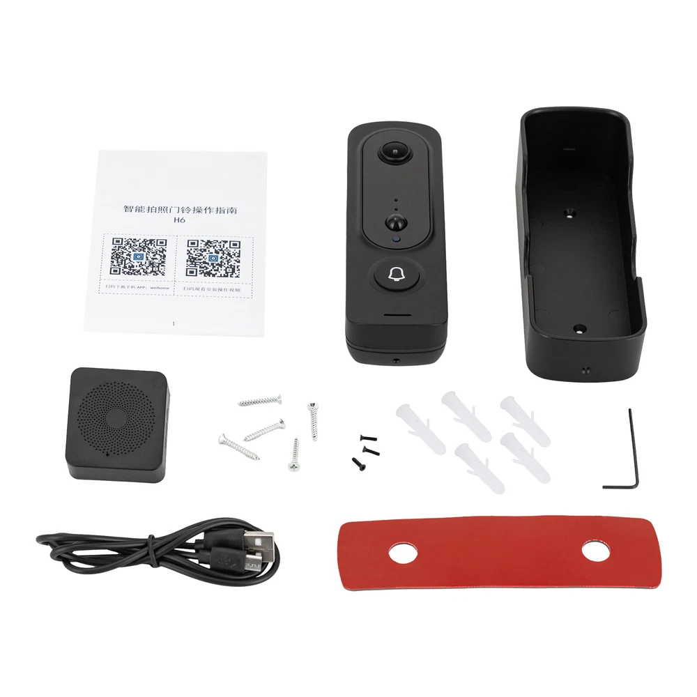 Wireless Door Bell Camera With Chime WiFi Ring Doorbell Security Camera Wifi Visual Doorbell with Advanced Features for Enhanced Home Security Experience peace of mind with our innovative visual doorbell, designed to keep you connected and secure. Utilizing advanced wired transmission technology, this doorbell ensures stable and interference-free signals, so you never miss a visitor. With an ultra-clear camera for both day and night monitoring, you can capture every detail of your guests, no matter the time. Made from high-quality materials, this doorbell is built to last, providing reliable security for your home. 🏡 Key Features: Sturdy and Durable: Crafted from high-quality plastic using injection molding technology, ensuring high strength and long service life. All-rounded Protection: Functions as both a doorbell and a monitor, featuring motion detection, human PIR sensor, and night vision infrared capabilities for comprehensive security. Powerful Functionality: Controlled via the "weihome" app, allowing for remote wake-up, two-way calls, and video recording. Excellent Performance: Equipped with a 720P HD 120° wide-angle lens, auto white balance, and dual filters for optimal imaging in any lighting. Smart Technology: AI distinguishes human presence, with built-in 128G TF card for cyclic content coverage and free cloud storage for up to 30 days. User-Friendly Design: Supports 38 ringtones and 12 languages, allowing connection for up to 8 mobile phones simultaneously. 📱 The visual doorbell is not just a security device; it’s a smart addition to your home. With its IP65 waterproof rating, it’s designed to withstand all weather conditions, making it perfect for year-round use. The dual power supply modes, including rechargeable lithium batteries and DC power connection, ensure that your doorbell remains operational without interruption. Installation is a breeze with the included detailed English manual and all necessary accessories. Simply download the "weihome" app, follow the setup instructions, and mount the doorbell in your desired location. Its sleek rectangular design and rainproof cover enhance both functionality and aesthetics, making it suitable for various settings, including homes, offices, and hotels. Specifications: Model: H6 Style: Modern Shape: Rectangular Color: Black Material: Plastic Surface Treatment: Injection Molding Mount Type: Wall Mount Control Type: WIFI Assembly Required: Yes Storage: Free Cloud Storage Communication Interface: Wireless Support OS: iOS, Android Power Supply: DC 5V-1A Standby Current: 120μA Operating Current: 170mA Angle View: 120° Infrared: 6*850nmΦ28Mil Battery: 2*18650 Batteries (Included) Waterproof Rating: IP65 Night Vision Distance: 10 m / 32.81 ft Signal Limit Distance: 10 m / 32.81 ft Host Size: 14.65cm × 5.05cm × 2.83cm Ding-dong Machine Size: 4.45cm × 4.15cm × 2.3cm Gross Weight: 0.4kg Package Size: 17cm × 8cm × 8cm What’s in the Box: 1 × Visual Doorbell 1 × Housing 1 × Ding-dong Machine 1 × Bracket 1 × USB Cable 1 × Allen Key 1 × English Manual Other Accessories for Installation Usage Tips: Ensure the doorbell is installed in a location with optimal signal strength. Regularly check and clean the camera lens for clear visibility. Care & Maintenance: Clean the doorbell with a soft cloth to maintain its appearance. Avoid using harsh chemicals that may damage the surface. Warranty / Shipping Info / FAQ: Please check the size carefully before ordering. Avoid using this product in extreme temperatures. The factory settings are in English; please refer to the manual for setup. Do not install on metal doors or walls to ensure proper functionality. Elevate your home security with our visual doorbell today! Enjoy the convenience and peace of mind it brings to your daily life. 🌟 Payment Delivery details Terms of sales About us Contact us Payment We accept ebay payment 。 Fees such as import duties, taxes are not included in the item price or shipping costs. These charges are the buyer's responsibility. Delivery details Shipping: 2-9 working days to: USA Terms of sales We maintain high standards of excellence and strive for hundred percent customer satisfaction. Feedback is very important to us. We hope that you contact us immediately before you give neutral or negative feedback, so that we can address your concerns. It is impossible to address issues if we do not know about them! About us Your satis faction is our ultimate goal. We work hard to earn your trust and future business. Our certified technicians have tested each item before shipping. The unit comes with 1 year limited warranty on all manufacturing defects. a) If you receive a defective item, you may return it or ask for a discount. Please contact us within 14 days after you receive the package. b) What you returned must be intact and in its original packaging as re? u. Customer is responsible for shipping costs of the returned item. c) We will cover the cost of shipping back t with the shipping rate indicated in the registration page. We will send you a new unit or refund the full payment you paid. Thank you. Contact us Business Hour Business Hour: Monday To Friday: 8:30 AM to 5:00 PM (Beijing China time) Due to time zones, our reply to your questions may not be immediately. But within above working time, we will reply your email within 24 hours. If it's non-workdays, please kindly be patient and wait till Monday. Please contact us with ebay message. Please feel free to contact us if you have any questions. Monday To Friday: 8:30 AM to 5:00 PM (Beijing China time) Due to time zones, our reply to your questions may not be immediately. But within above working time, we will reply your email within 24 hours. If it's non-workdays, please kindly be patient and wait till Monday. Please contact us with ebay message. Please feel free to contact us if you have any questions. Features high performance,good stability Manufacturer Warranty 3 Years Country/Region of 