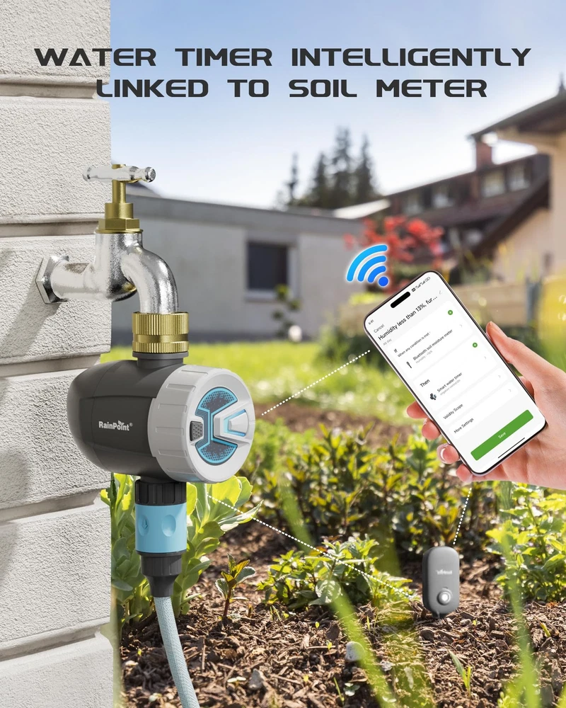 Sprinkler Timer Wi-Fi Irrigation Timer, Water Timer with Wi-Fi Hub Durable Brass Inlet:2024 new upgrade to 360° brass swivel to avoid water leaks. Built-in metal filter, not easy to block and withstand 35kg of water pressure Complete Remote Control:Easily connect the smart sprinkler timer to APP via 2.4 GHz WiFi or Bluetooth (Up to 60 meters), then you can manage your watering schedule via your phone APP at any time Flexible Watering Program:The wifi hose timer can set 20 separate watering programs with customized watering start times, frequencies, and duration. There are also two irrigation modes to choose from, Cycle & Soak mode, to meet the watering needs of different plants Smart Watering:With rain delay mode in the wifi sprinkler controller that helps you conserve water, postpone your schedule for 24/48/72 hours then resume it. Using manual mode, any lawn or garden can be watered as needed, with customizable times from 1 min to 8 hrs, and without interrupting your schedule Voice Control:Compatibles with Alexa and google assistant. You can control it with simple voice commands. And this smart irrigation controller has a wide range of applications and is ideal for lawn, garden, patio, greenhouse, flower beds, pool filling, and irrigation applications for misting systems