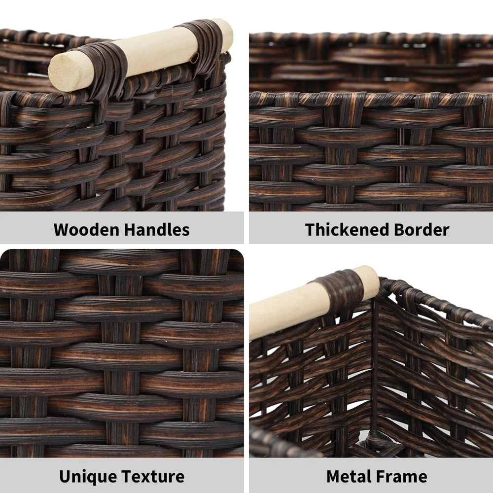 Durable Structure: Made from durable and ordless material tightly woven on a lacquered metal frame, this rectangle basket is built to last, ensuring its resistance to deformation and fading. Multifunctional Storage: The wicker storage basket crafted with washable material is great for bathroom storage of toilet papers,candles, towels, lotions, or sprays in the back of toilet and on shelves, the vanity, and the toilet tank top. Sturdy Side Handles: The wicker basket with handles is designed for easy carry, making it a versatile storage solution for bathrooms, bedrooms, living rooms, and offices. Elegance in Design: Featuring a stylish and modern exterior, the woven basket organizer serves as not only a practical storage solution but also decorative baskets for home decor, enhancing the ambiance of your space. Proper Capacity: Measuring 14¼" x 6½" x 4¼" (L x W x H), the shelf basket offers a large enough capacity for home organization. Size may vary by 1/2 inch difference due to handmade