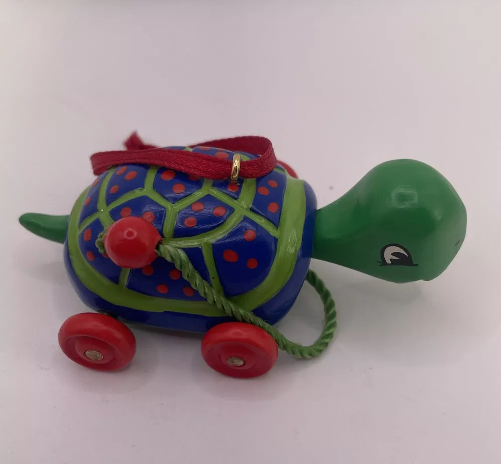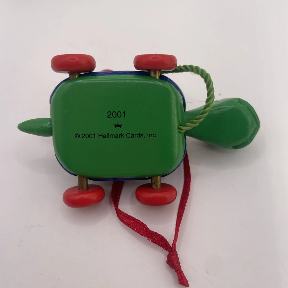This Hallmark Keepsake Ornament is a must-have for any fan of The Wiggles. It features a cute and cuddly green turtle, made of wood and crafted with care in 2001. The turtle is an original, licensed reproduction and is sure to bring joy to anyone who sees it. Add this charming ornament to your collection today! No box.