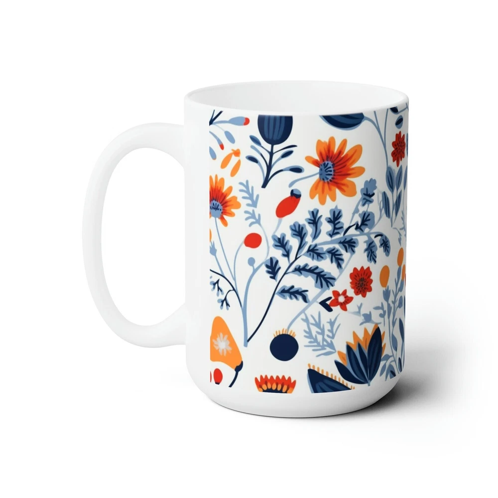 Wild Flower Folk Art Style Ceramic Mug 15oz Product Details.. This high quality 11oz. ceramic white mug has a premium hard coat that provides crisp and vibrant color reproduction sure to last for years. Perfect for all hot & cold beverages. The highest quality printing possible is used. It will never fade no matter how many times you wash it. Material: 100% Ceramic. Print both sides. Dishwasher and Microwave Safe. High Gloss + Premium White Finish. Printed in the U.S.A. Personalized & Custom. We support personalized and custom mug to add custom, when placing an order, you can add notes to the "order note" in shipping address section. Also you can contact us directly via message. Shipping Info. Ready to ship in 1 to 2 business days, All products are made-to-order and proudly printed in the United States. Shipped by USPS and DHL, You will receive your order in 5-7 days. Replace & Refund. All products are defective during shipping broken, chipped will be replaced free of charge. You are not satisfied with the product, we will refund 100% money to you. If any other issues arise, please do not hesitate to message, we would be more than happy to assist you.