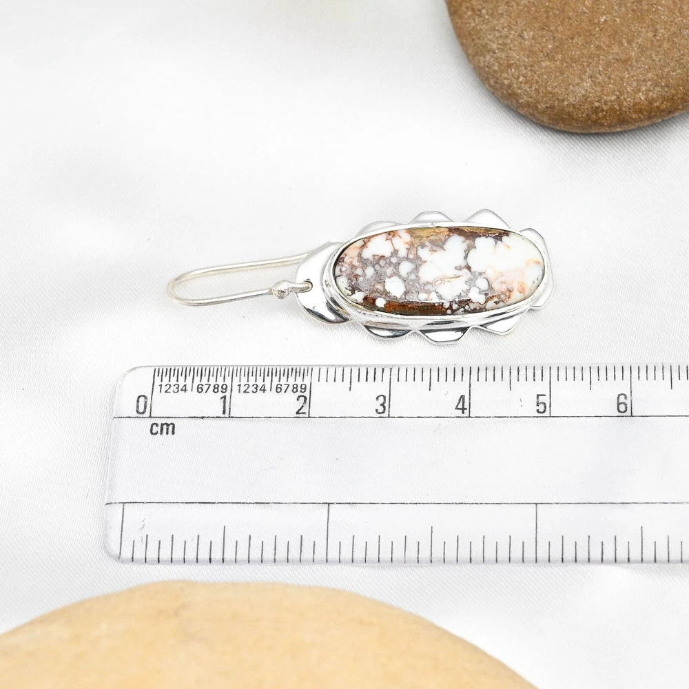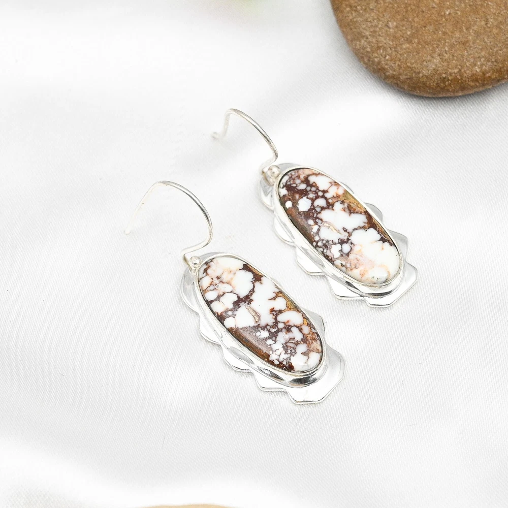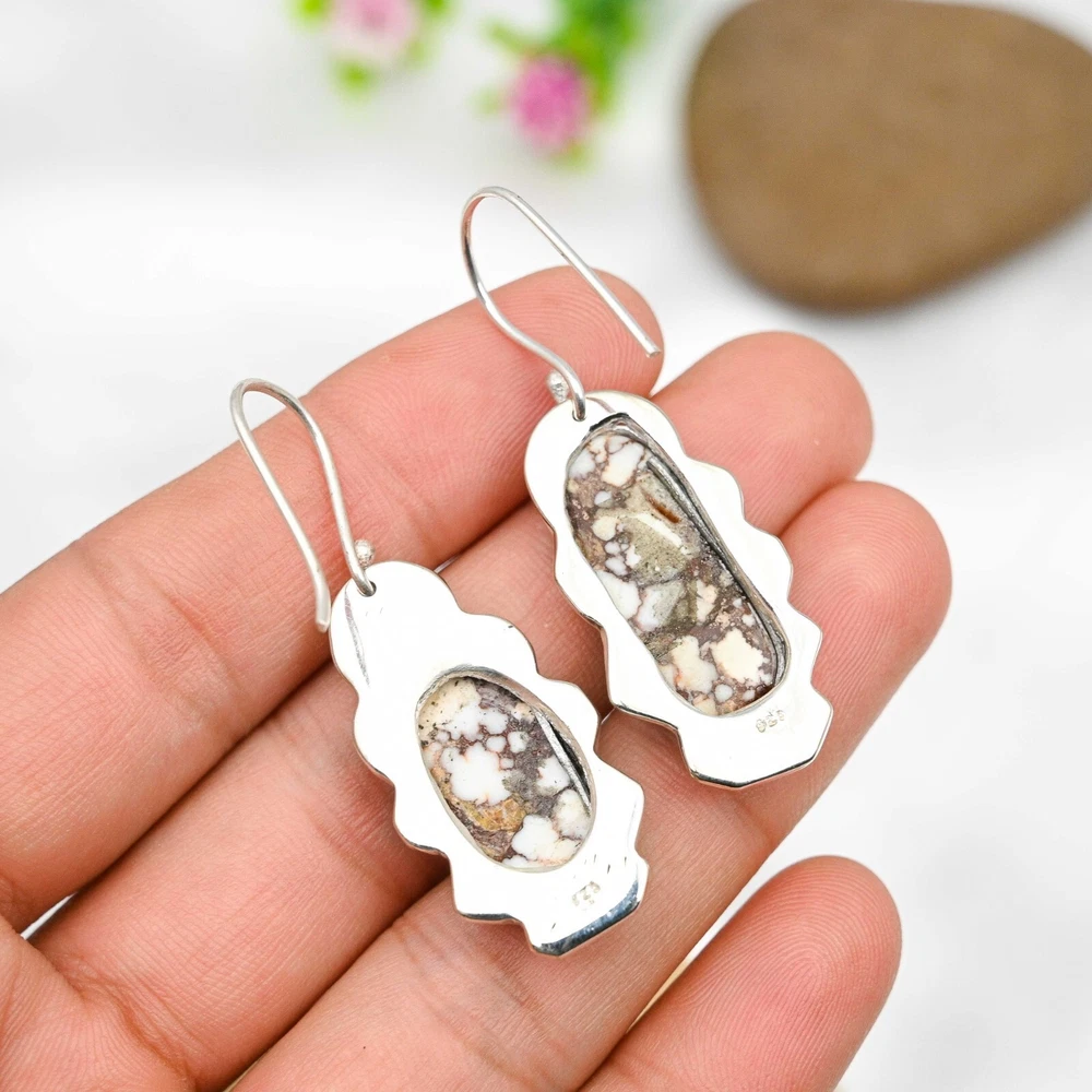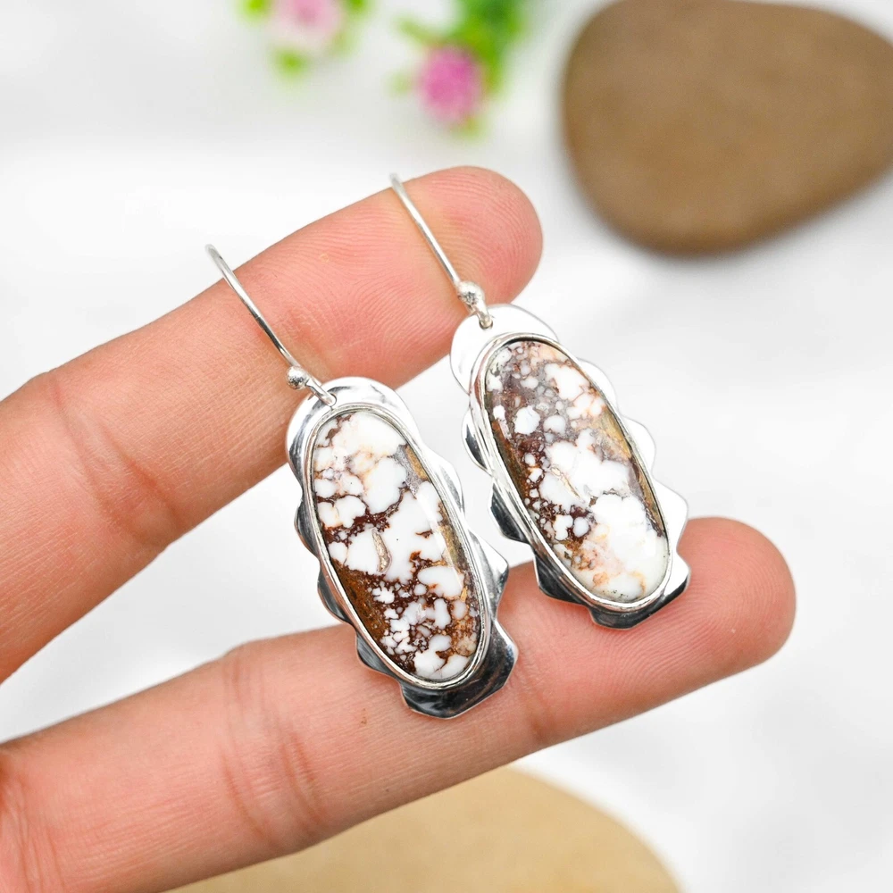 Main Stone Treatment:Not EnhancedMain Stone Color:WhiteSeller Warranty:YesMain Stone:Wild HorseCountry of Origin:IndiaItem Length:1.96"Metal:Sterling SilverNumber of Diamonds:N/AMaterial:Stone, GemstoneStyle:Dangle/DropMain Stone Creation:NaturalMain Stone Shape:OvalDiamond Clarity Grade:N/AColored Diamond Intensity:N/ACountry/Region of Manufacture:IndiaSetting Style:BezelClosure:HookType:EarringsSecondary Stone:Wild HorseCut Grade:ExcellentNumber of Gemstones:2Shape:Same As PictureEar Area:LobeBrand:HandmadeCertification:N/AColor:SilverBase Metal:Sterling SilverOccasion:Anniversary, Birthday, Christmas, Engagement, Father's Day, Mother's Day, Valentine's Day, WeddingCollection:HandmadeDiamond Color Grade:N/ATheme:Beauty, Bohemian, Ethnic, Halloween, LoveTotal Carat Weight:10 carat and aboveMetal Purity:925