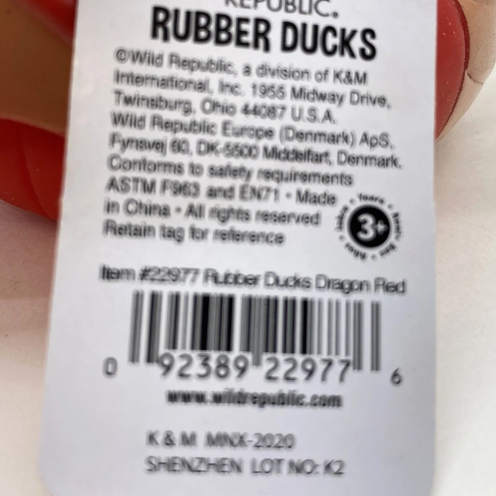 Introducing the Wild Republic Rubber Red Dragon Duck, a charming addition to any baby's toy collection. This adorable bath toy is crafted with high-quality materials and features a vibrant red color that will capture your little one's attention. Measuring at 4 inches, it's the perfect size for snuggling and playing with. Designed by Wild Republic, a trusted brand in the toy industry, this rubber duck is a must-have for any baby. Its soft and cuddly texture will make it a favorite companion for bath time and beyond. Whether you're looking for a gift or simply adding to your baby's toy collection, the Wild Republic Rubber Red Dragon Duck is sure to bring joy and smiles.