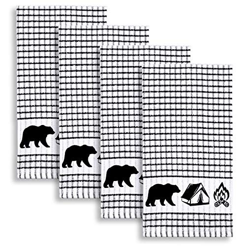 Return Policy Fast Delivery Trusted seller Wilderness Camping Terrycloth Kitchen Towels Windowpane Check Fabric, Set of 4 (Black) Product Description Cotton Blend Set of four windowpane check black and white terrycloth towels with tents, bears, and campfires Both decorative and functional, these high quality absorbent towels are perfect for drying dishes and keeping workspaces cleaning Each towel measures 28 by 18 inches; fabric loop on reverse side for hanging 80% cotton / 20% polyester; machine wash / tumble dry low; made in India Perfect for the camping enthusiast! Shipping Returns Payment Shipping Shipping is FREE to all addresses other than APO/PO boxes in the lower 48 states. All our stock ships from US-based warehouses. Shipped via USPS or UPS (depending on location and package weight) Unless stated otherwise, all orders will ship within 24-72 hours of your payment being processed. Check our feedback to see the great reviews of FAST shipping we offer. Returns Seller does not accept returns Payment We currently accept payment via eBay managed payments only. Once payment is cleared, we will dispatch your shipment within 1-3 business days. Please refer to the "Shipping" tab for more information regarding shipping speed to your destination.