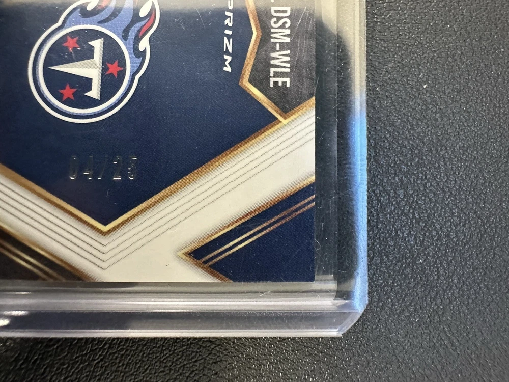 This is a rare and highly sought-after Will Levis Rookie 2023 Select Draft Selection Patch Tye Dye Titans trading card. With a print run of only 25, this card is a must-have for any serious collector. The card features a stunning Tie-Dye Prizm parallel/variety and is made from high-quality 130 Pt. card stock. The card is an original and comes from the National Football League (NFL) manufacturer Select. It is ungraded and has not been autographed. The card is in English and was manufactured in the United States in 2023. The card features Will Levis, a player for the Tennessee Titans, and is a great addition to any football fan's collection.