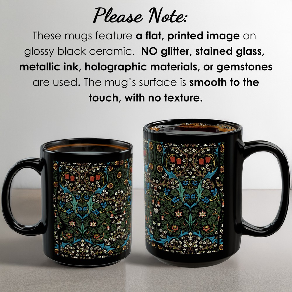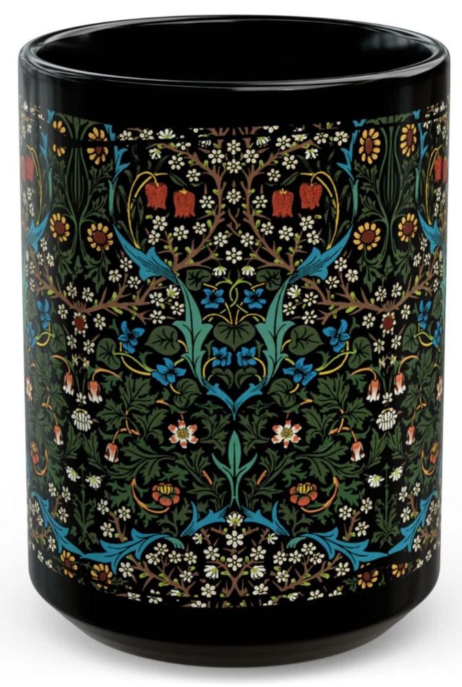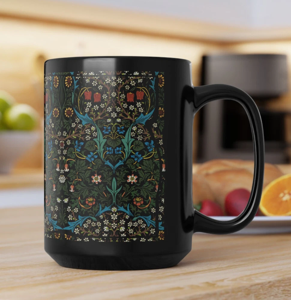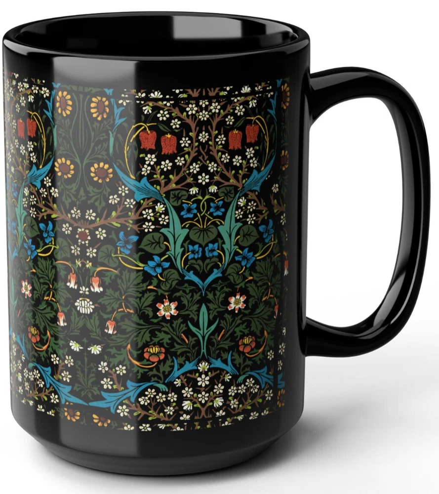 CERAMIC MUG - 11 oz. or 15 oz. size Sip in timeless style with this elegant mug featuring William Morris’ beloved Blackthorn design. A true classic of the Arts and Crafts movement, this floral pattern weaves together intricate blossoms, winding branches, and foliage in rich, nature-inspired tones. Whether you're enjoying your morning coffee or winding down with herbal tea, this mug brings a refined touch of vintage British design to your everyday rituals. A perfect gift for admirers of antique textiles, nature-inspired decor, or the enchanting charm of cottagecore. Keywords : William Morris mug, Blackthorn mug, Arts and Crafts cup, vintage floral mug, botanical coffee mug, nature print mug, antique pattern cup, Morris flower mug, British textile mug, cottagecore tea cup, floral tapestry mug, elegant botanical mug, William Morris gift Whether you're drinking your morning coffee, evening tea, hot chocolate, or something in between – this mug's for you! It's sturdy and glossy with a vivid print that will withstand the microwave and dishwasher. • Ceramic • Dishwasher and microwave safe • Rounded Corners • C Handle • Suitable for hot or cold beverages • 11 oz or 15 oz size 11 oz cup Height: 3.75" 11 oz cup Diameter: 3.15" 15 oz cup Height: 4.75" 15 oz cup Diameter: 3.25" **************** ABOUT PRODUCTION AND SHIPPING: ~ How it works: I am an independent designer, not the manufacturer. My designs are printed on products manufactured by my production partners (e.g., “Print on Demand”.) ~ Your item is sent to production to be made very quickly after you order it. ~ Once production starts (usually within an hour), it cannot be canceled. ~ The average production time depends upon the product. ~ Please refer to the item listing for a delivery estimate. ~ We do not have the ability to “rush” an order or promise delivery by a specific date. ~ Please allow enough time for your order to get to you when you need it. ~ Please carefully check your shipping info/details. In the case of an incorrect shipping address, we do not cover the cost of reshipment. ABOUT THE COLORS & SIZING: ~ Actual colors may vary slightly. ~ Every computer monitor displays colors slightly differently. ~ We make every effort to display the colors of each item as accurately as possible. ~ Please see the size chart on each item listing (if applicable). If you are between sizes, please follow the guidance on the item's size chart. CUSTOMS CHARGES / IMPORT TAXES: ~ Buyer is responsible for any and all Customs Charges and/or Import Taxes imposed, required and collected by your country. RETURNS, EXCHANGES, CANCELLATIONS: ~ We do not accept returns. Because your item is made especially for you, our production partners will not accept it back & they will not reimburse us. Therefore, it is not feasible for us to accept returns. We ask for your understanding that we are a small business so returns really impact our ability to operate. ~ If you receive a damaged or defective item or if the wrong item, please contact us right away. We will work with you and our production partners to make it right. Thank you for shopping with us! We appreciate your business!