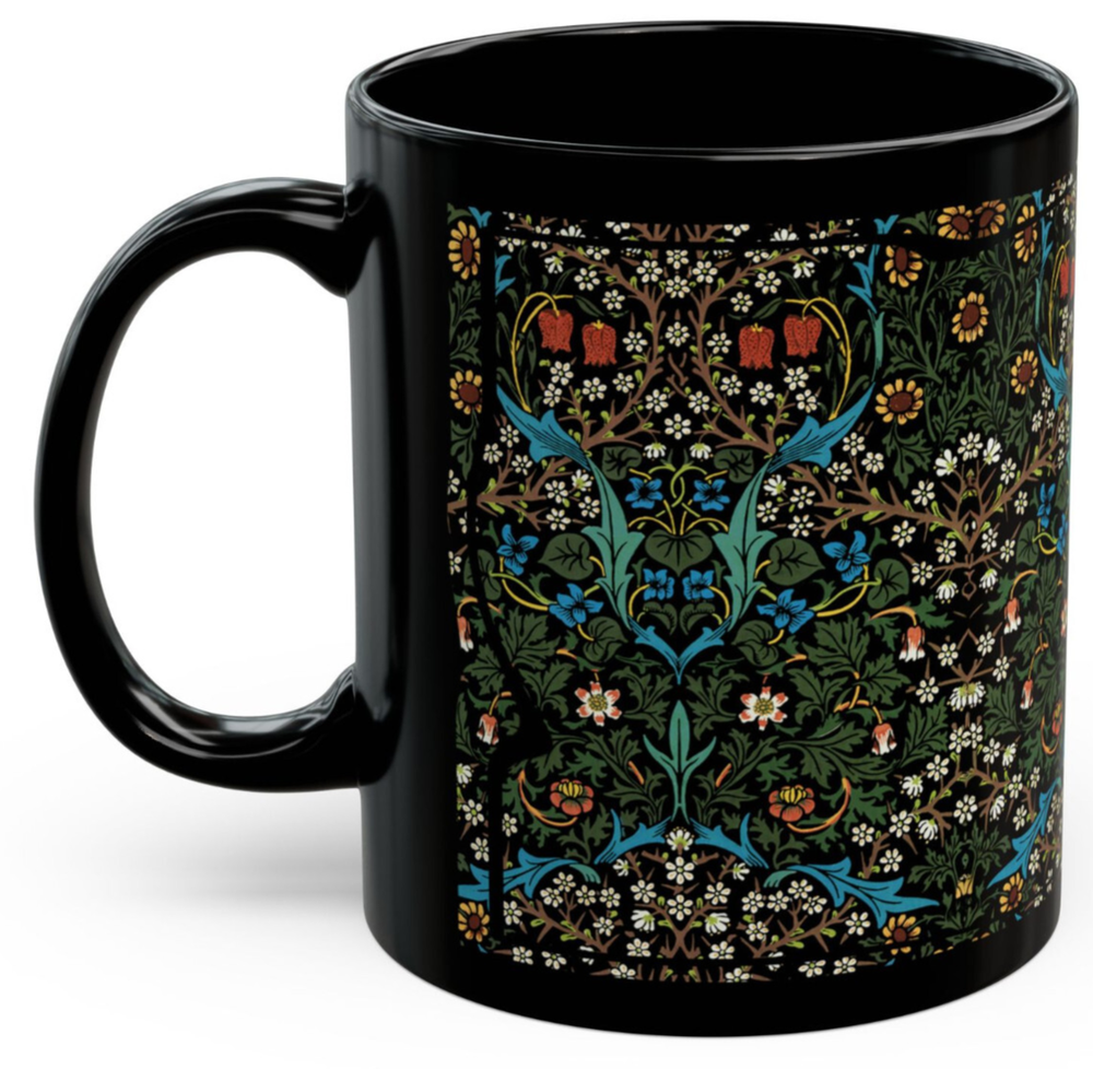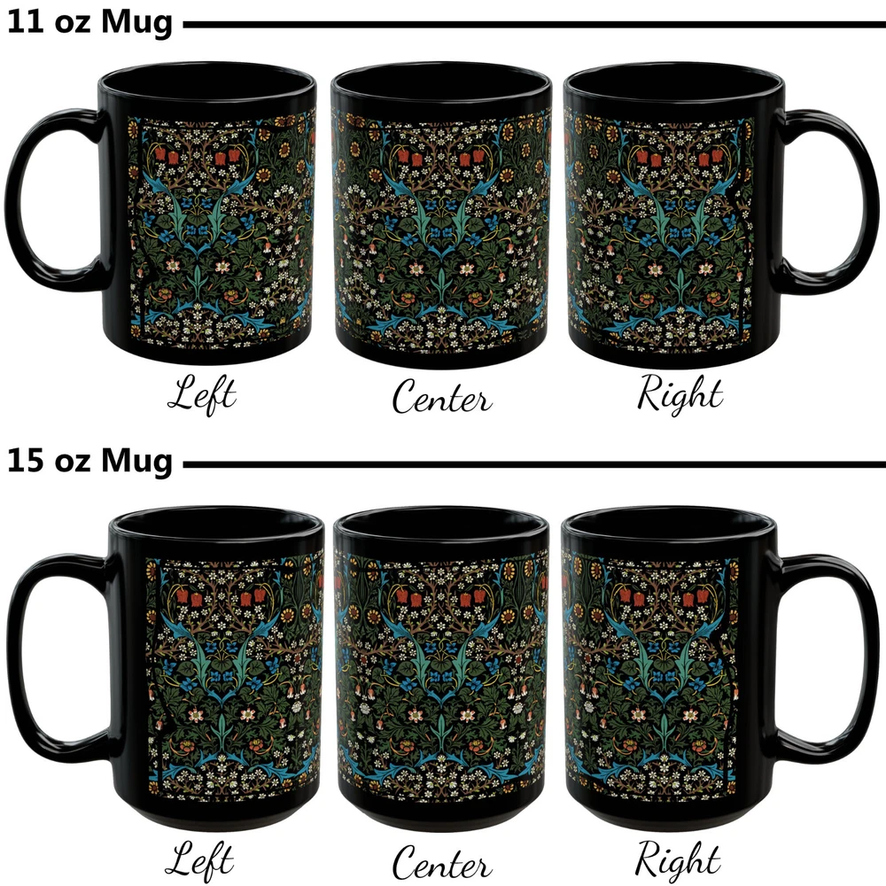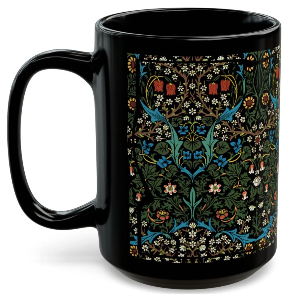 CERAMIC MUG - 11 oz. or 15 oz. size Sip in timeless style with this elegant mug featuring William Morris’ beloved Blackthorn design. A true classic of the Arts and Crafts movement, this floral pattern weaves together intricate blossoms, winding branches, and foliage in rich, nature-inspired tones. Whether you're enjoying your morning coffee or winding down with herbal tea, this mug brings a refined touch of vintage British design to your everyday rituals. A perfect gift for admirers of antique textiles, nature-inspired decor, or the enchanting charm of cottagecore. Keywords : William Morris mug, Blackthorn mug, Arts and Crafts cup, vintage floral mug, botanical coffee mug, nature print mug, antique pattern cup, Morris flower mug, British textile mug, cottagecore tea cup, floral tapestry mug, elegant botanical mug, William Morris gift Whether you're drinking your morning coffee, evening tea, hot chocolate, or something in between – this mug's for you! It's sturdy and glossy with a vivid print that will withstand the microwave and dishwasher. • Ceramic • Dishwasher and microwave safe • Rounded Corners • C Handle • Suitable for hot or cold beverages • 11 oz or 15 oz size 11 oz cup Height: 3.75" 11 oz cup Diameter: 3.15" 15 oz cup Height: 4.75" 15 oz cup Diameter: 3.25" **************** ABOUT PRODUCTION AND SHIPPING: ~ How it works: I am an independent designer, not the manufacturer. My designs are printed on products manufactured by my production partners (e.g., “Print on Demand”.) ~ Your item is sent to production to be made very quickly after you order it. ~ Once production starts (usually within an hour), it cannot be canceled. ~ The average production time depends upon the product. ~ Please refer to the item listing for a delivery estimate. ~ We do not have the ability to “rush” an order or promise delivery by a specific date. ~ Please allow enough time for your order to get to you when you need it. ~ Please carefully check your shipping info/details. In the case of an incorrect shipping address, we do not cover the cost of reshipment. ABOUT THE COLORS & SIZING: ~ Actual colors may vary slightly. ~ Every computer monitor displays colors slightly differently. ~ We make every effort to display the colors of each item as accurately as possible. ~ Please see the size chart on each item listing (if applicable). If you are between sizes, please follow the guidance on the item's size chart. CUSTOMS CHARGES / IMPORT TAXES: ~ Buyer is responsible for any and all Customs Charges and/or Import Taxes imposed, required and collected by your country. RETURNS, EXCHANGES, CANCELLATIONS: ~ We do not accept returns. Because your item is made especially for you, our production partners will not accept it back & they will not reimburse us. Therefore, it is not feasible for us to accept returns. We ask for your understanding that we are a small business so returns really impact our ability to operate. ~ If you receive a damaged or defective item or if the wrong item, please contact us right away. We will work with you and our production partners to make it right. Thank you for shopping with us! We appreciate your business!