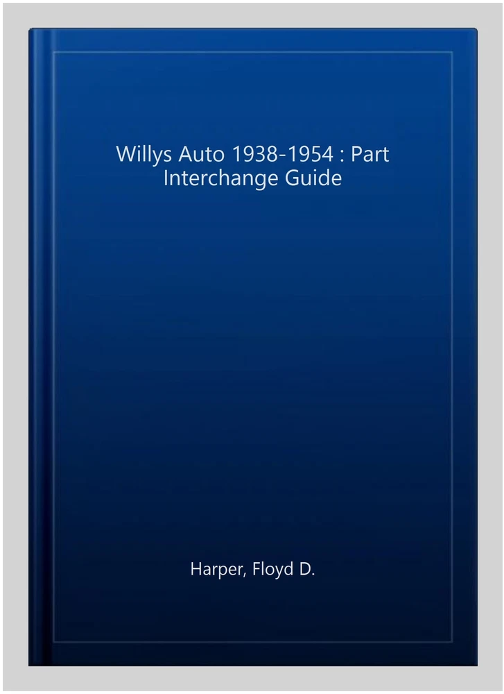 Willys Auto 1 : Part Interchange Guide, Paperback by Harper, Floyd D., ISBN 1533339384, ISBN-13 9781533339386, Brand New, Free shipping in the US This 1 parts interchange manual is a must if working on your major . car or restoring it! A true guide unlike others that only list places to buy parts and do not identify the interchangeability of must for every restoration and / or maintenance project saving money and research time! This manual has been designed to help you in the identification and purchase of original equipment parts. It should save you many hours of time locating the parts you need. With this manual you will know exactly what parts from which vehicles are identical. There may be no need to pay a high price for a supposedly rare part when it may be identical to many other manual covers all major makes of cars for the years of 1938 thru 1954 including: Buick, Cadillac, Chevrolet, Chrysler, Crosley, Desoto, Dodge, Ford, Frazer, Henry J, Hudson, Kaiser, Lafayette, LaSalle, Lincoln, Mercury, Nash, Oldsmobile, Packard, Plymouth, Pontiac, Studebaker, Terraplane, and include engines, transmissions, cooling systems, fuel pumps, ignition system, clutch, front and rear axles, bearings, brakes, rivets, generator and starter, and universal joints. Body parts and glass are not included.