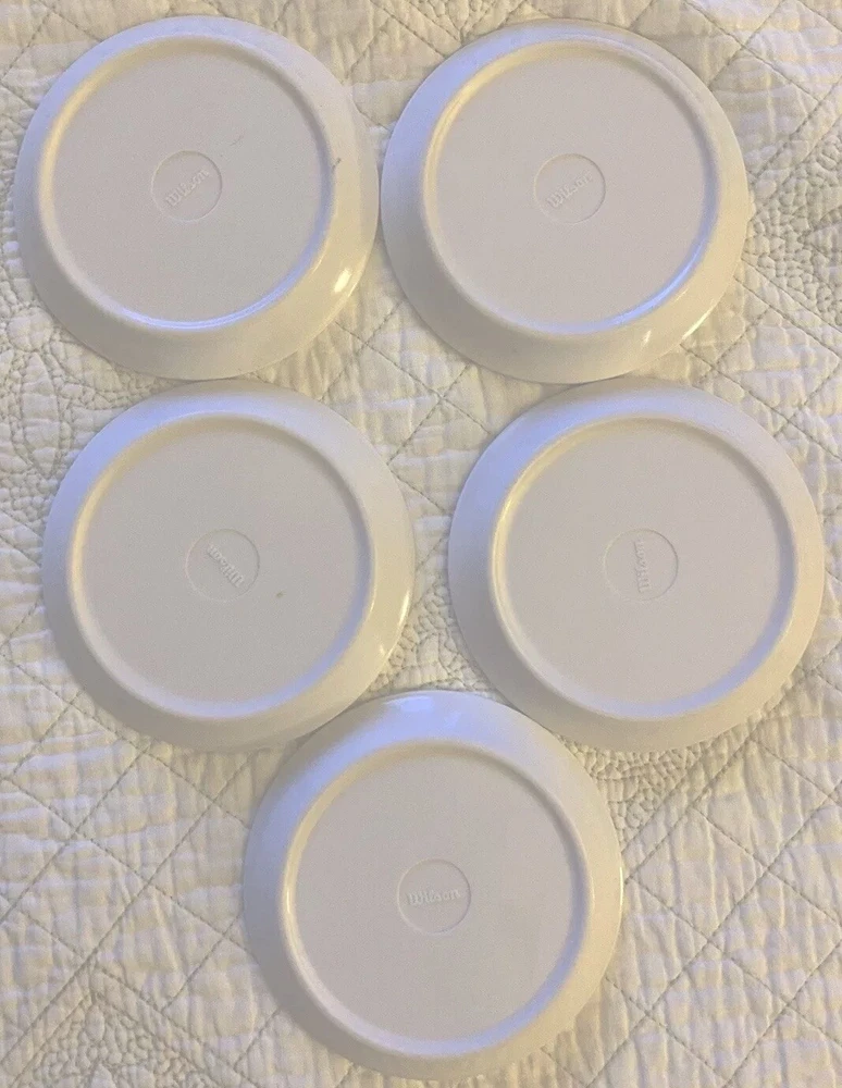 round plates measure 4 inches in diameter and are made of durable plastic, ensuring they can withstand frequent use or display. In addition to the stackable design, these plates also feature a trinket dish and coaster, making them a versatile addition to any home or office. The late 20th-century era and American culture add to the uniqueness!