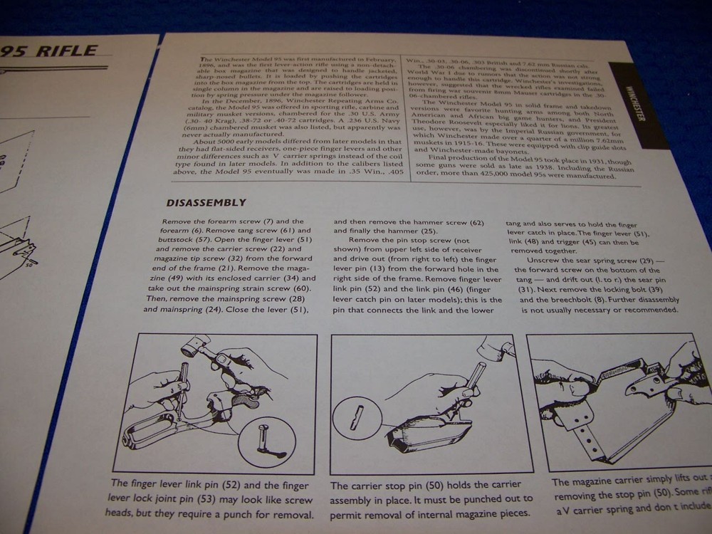 UP FOR SALE IS AN ORIGINAL PRINT 2-PAGE DRAWINGS ON... WINCHESTER MODEL 1895 RIFLE (SERIES) Page/s size: APROX: 8 1/2" X 11" SUBJECT: .. WINCHESTER MODEL 1895 RIFLE (SERIES) . . . . . . .....PERFECT FOR FRAMING!!! AUTHOR/ARTIST: N/A YEAR: 2009 ORIGINAL PRINT SCALE: N/A ARTICLE FEATURES: EXPLODED VIEW WITH PARTS LEGEND (IF SHOWN)/DETAILS/MAGAZINE (IF APPLICABLE)/SHORT DISASSEMBLY INSTRUCTIONS CONDITION: GREAT-LIGHT COLORING(NORMAL)..NOTE: ** SOLD FOR 2-PAGES DRAWINGS/PROFILES ...ANY OTHER ARTICLE ON BACK OF DRAWINGS/ARTICLE ARE NOT REPRESENTED IN THIS AUCTION!*** (REMEMEBER THESE ARTICLES ARE EXTREMELY OLD AND RARE...SOME MAY HAVE SOME BORDER DISCOLORATION/SMALL EDGE CHIPS/PAGE DISCOLORATION)/BINDING CUTOUTS.....SEE CONDITION AND NOTES LISTED ABOVE AS TO EACH ARTICLE! **THESE ARE AIRCRAFT ARTICLES THAT HAVE BEEN EXTRACTED FROM VINTAGE MAGAZINES/ECT,.. AND ARE INDIVIDUAL PAGES OF EACH SUBJECT AND SOLD AS COMPLETE ARTICLES ON EACH SAID AIRCRAFT AS LISTED ABOVE!.. NOT SOLD AS A COMPLETE MAGAZINE or BOOKLET!!! **all articles are shipped flat on cardboard flat and mail flat in manila envelope to INSURE condition! ** I DO OFFER COMBINED SHIPPING ON MULTIPLE ITEMS PURCHASED
