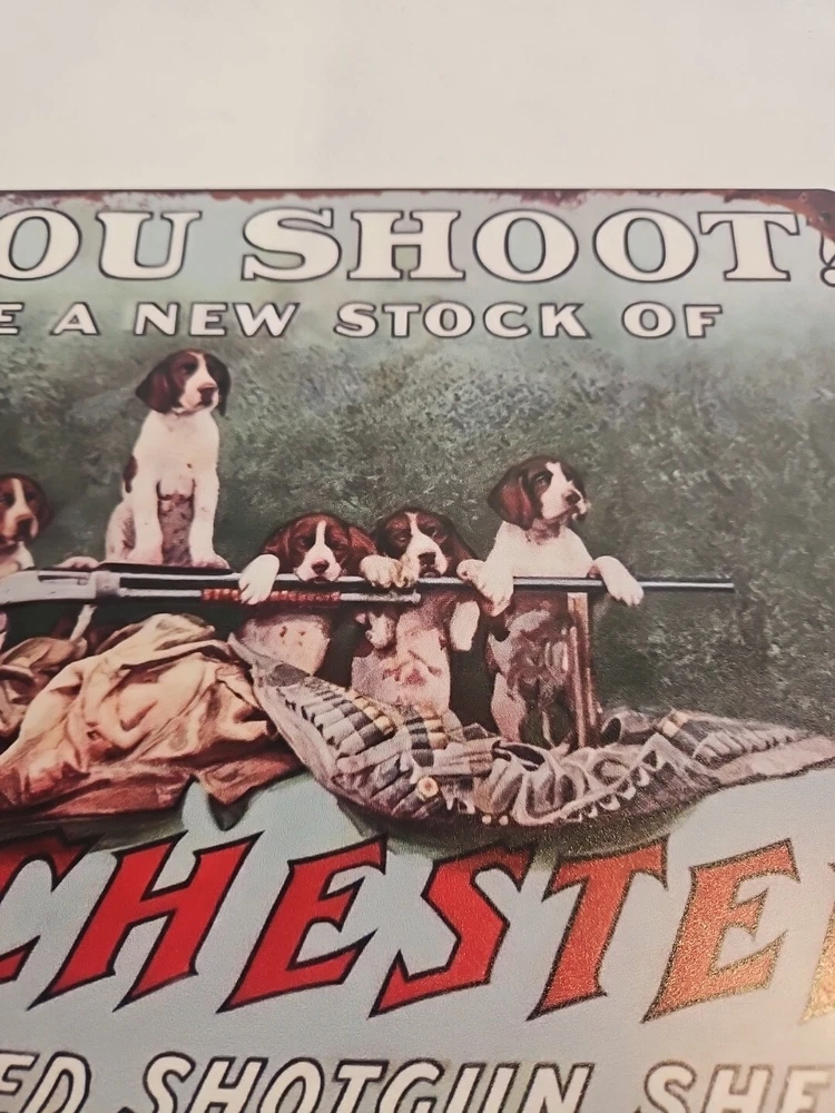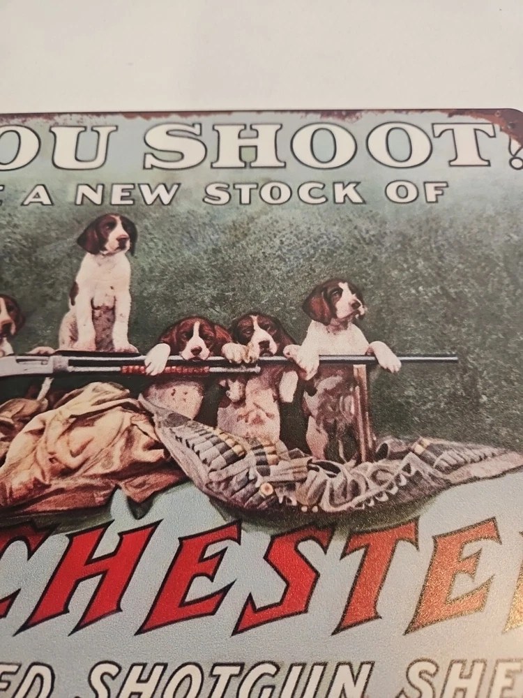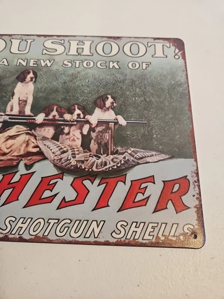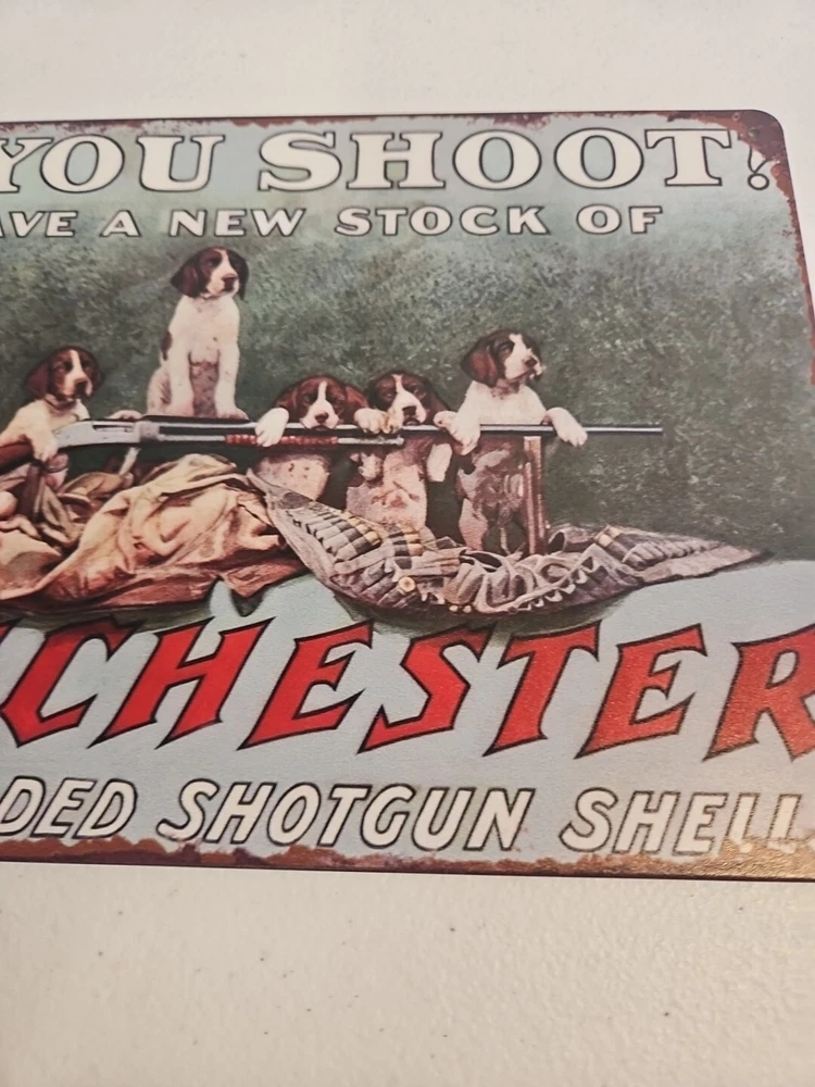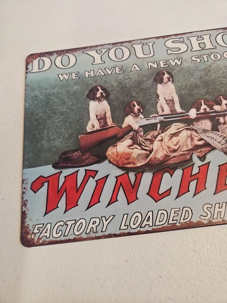 Add a touch of rustic charm to any room with this Winchester metal sign. Measuring 8x12 inches, this medium-sized sign features a novelty pattern of shells and a rustic/primitive style that is perfect for any home décor. The sign is made of high-quality metal material with a metallic finish that adds to its decorative appeal. The sign can be mounted on a wall or door using the provided hanging feature, or it can be displayed horizontally on a shelf or table. Its rusted look and multicolor design make it a great addition to any room. This sign is perfect for advertising purposes and comes in a rectangular shape that is easy to display.
