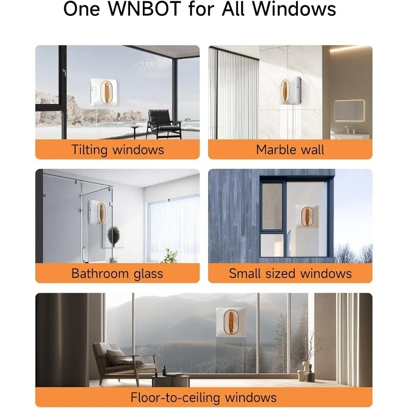 About this item 【6000Pa High Power Suction】6000Pa is the maximum suction power this window cleaning robot can provide, which is enough to surpass many similar products. It is equivalent to 45N of manual pressure by hand, which is very efficient and sufficient for cleaning glass. 【High Precision Detection & AI Algorithm】Even frameless glasses cleaning is nothing difficult due to ultra-advanced Optocoupler edge detection technology, and Intelligent frequency conversion will automatically adjust the suction power to help crossing small gap. 【AI Nevigation for 5 Cleaning Paths】When the window cleaning robot is turned on, Z-shaped cleaning is started by default. The remote control can switch to N-shaped edge cleaning mode. If you encounter glass with relatively large stains you can use N+Z cleaning mode. It is also equipped with left and right area cleaning to help you better clean the stubborn stains areas of the glass. 【Intelligent Water Spraying System】Our Window Cleaning Robot features a 150ml water tank for efficient cleaning, controlled by remote. With a speed of 3.86 minutes per square meter, ensuring 3.6 hours of uninterrupted spraying. 【Highest safety】This window robot cleaner is designed with a built-in UPS (uninterruptible power supply), allowing the window cleaner robot to continue operating for up to 30 minutes during a power outage. The window cleaner robot also includes a 5m high-strength safety rope supporting up to 50kg, ensuring safe cleaning for high-rise windows.