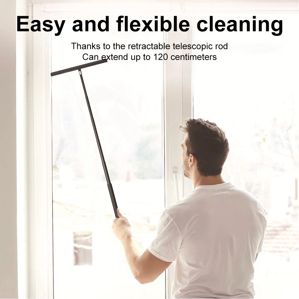 Features: 1. Telescopic design: this long handle shower squeegee can be shortened to a minimum of 11.4 inches (approx. 29 cm) and extended to a maximum of 46 inches (approx. 119 cm), allowing you to easily clean high-rise windows and floors without bending over, providing you with optimal control and comfort for your daily cleaning tasks. 2. Dual hook design: the product comes with 1 silicone hook and 1 adhesive hook, no drilling required, you can hang the shower squeegee wherever you want to store it conveniently. 3. Easy to use: the squeegee of this glass cleaning tool is made of silicone, which can easily eliminate water and soap stains and enhance your cleaning experience. 4. Durable and long-lasting: this bathroom squeegee is made of high-quality materials that are built to last. The sturdy construction ensures that it can withstand daily use and remain in perfect working condition for years to come. 5. Multi-purpose Cleaning: This squeegee is suitable for a variety of cleaning tasks and can easily clean shower doors, windows, tiles, mirrors, bathrooms, kitchens, patios, balconies and many other surfaces. Specifications: Material: rubber Telescopic range: 29cm-119cm Product size: 29*30.5*4cm Product features: telescopic design, double hooks equipped with Application: shower doors, windows, tiles, mirrors, bathrooms, kitchens, terraces, balconies and many other flat surfaces to clean. Package List: 1*Scraper head 1*Telescopic pole 1*Square hook 1*Shaped hook 1*Cloth cover 1*Packaging box On Nov 21, 2024 at 03:02:19 PST, seller added the following information: