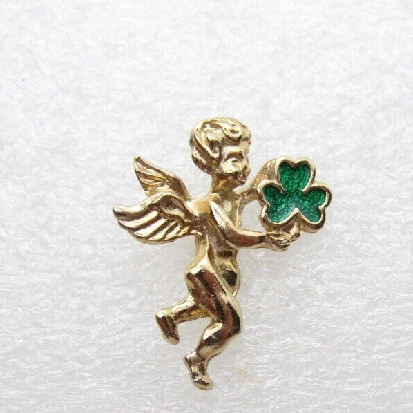 Winged Angel 3 Clover Leaf Lapel Pin (B825)