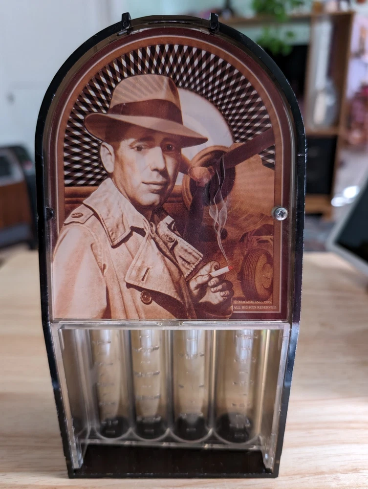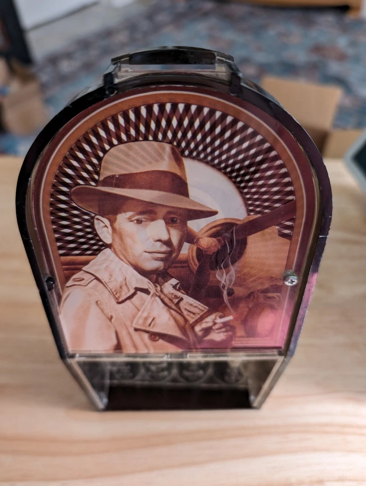 Humphrey Bogart coin sorter bank. When you put a coin in he winks his eye.