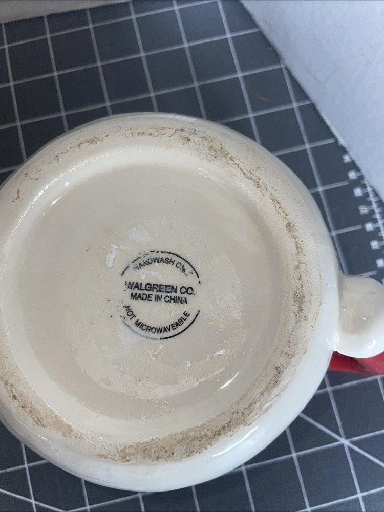 This product is a unique and whimsical Santa Claus mug set that would make for a fun addition to anyone's kitchen or dining space. The colorful design features a winking Santa Claus in a sleeping position, adding a playful touch to enjoying hot beverages like hot chocolate, coffee, or tea. This collectible mug set is sure to bring a bit of holiday cheer and charm to your morning routine or as a quirky decor piece in your home. Made by Walgreen co.
