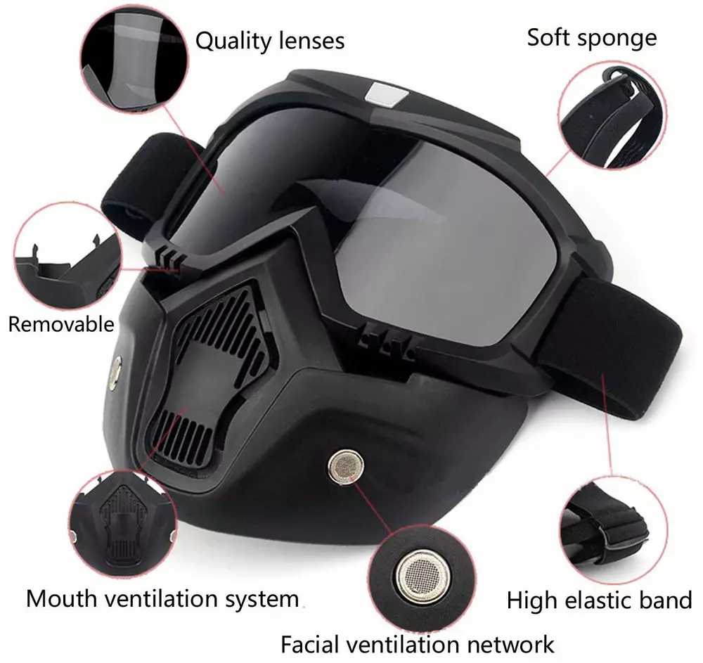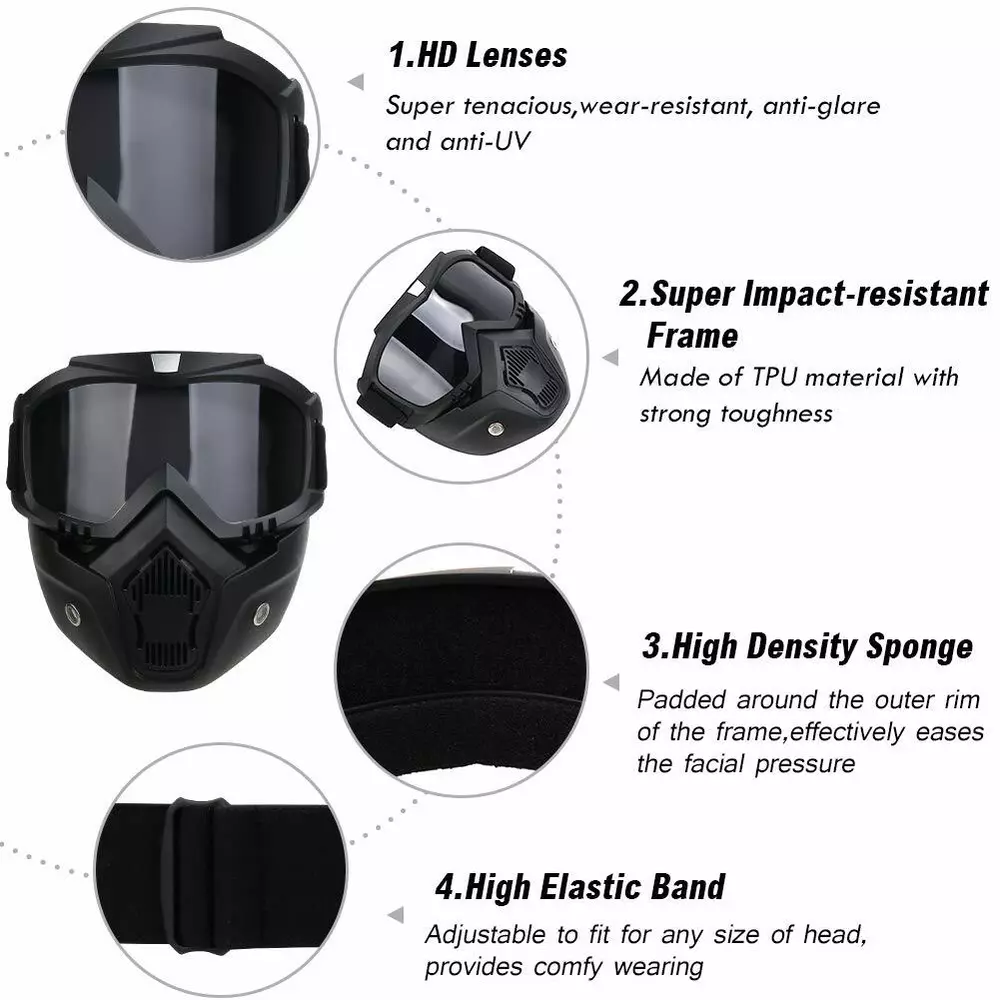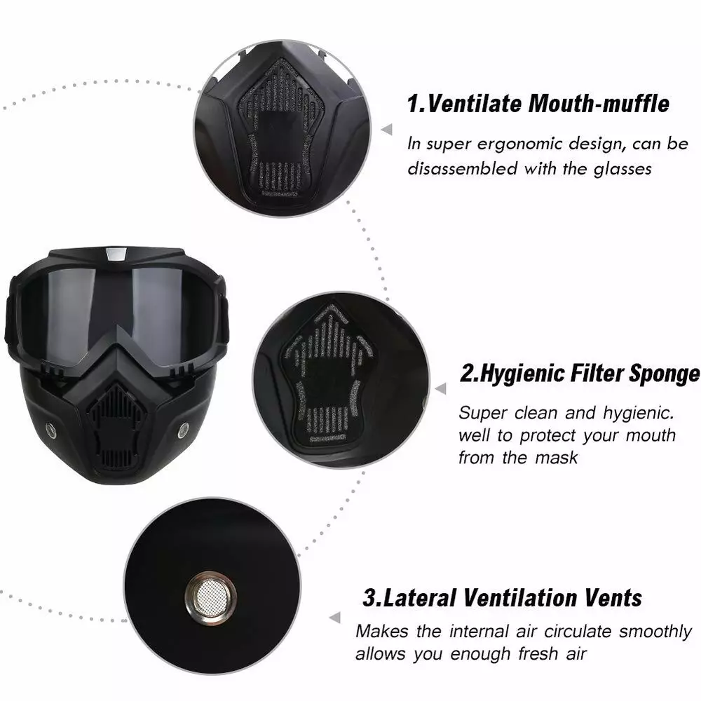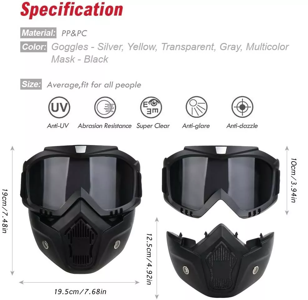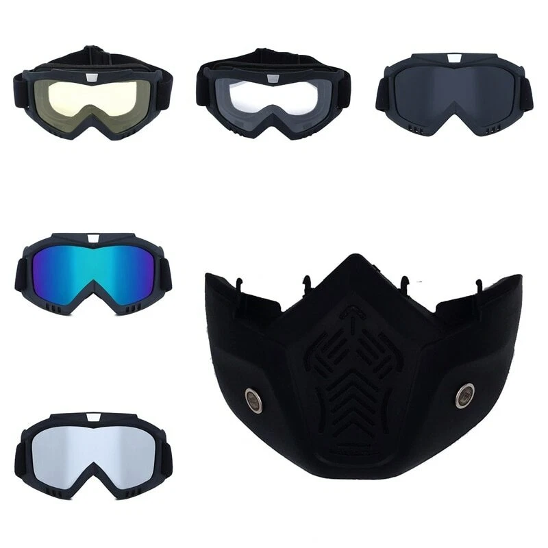 Winter Snow Sport Goggles Snowboard Ski Snowmobile Face Mask Sun Glasses Eyewear Description: 100% Brand New and High Quality. High quality PC lens is lightweight, scratch resistant, good toughness, not easily damaged Impact Resistant, Anti-Shock, Anti-Scratch Face foam provides an excellent seal between the face and goggle to protect against roost, and provide maximum sweat absorption Adjustable Headband, Flexible Design, Super Light Weight Cushioned Comfortable Interior, UV 400 protection Specifications: Frame Color: Sand Black Strap Size:Approx.42~60cm*4cm(L*W)(Adjustable) Size:approx. 19*19cm Adult Flexible Nose and Protective Face Glasses Material: TPU frame, PE face + PC, anti-skid silicone stripe, double foam Feature: Removable Glasses, Filtration of Breathing Holes, Dust, Sand, maximize keep breathing gently. With holes on both sides to ensure that the internal airflow Detachable Filter Mouth, for easy use Lens Width:approx.17cm Lens Height: approx.7.5cm Mouth Size:17.5*10.8cm(Width * Height) 1 x Riding Motocross Goggles