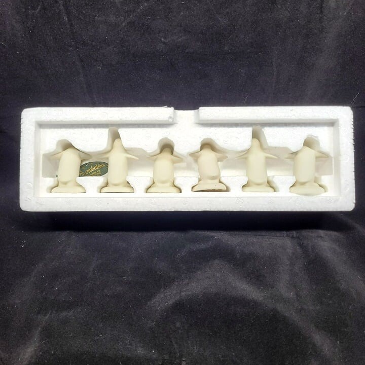 • Set of 6 penguin figurines • Made by Department 56 • Comes in original packaging • Charming winter decoration set • Collectible Snowbabies series